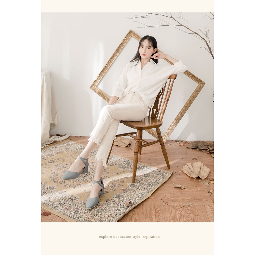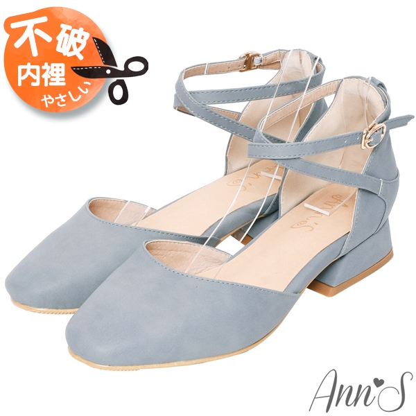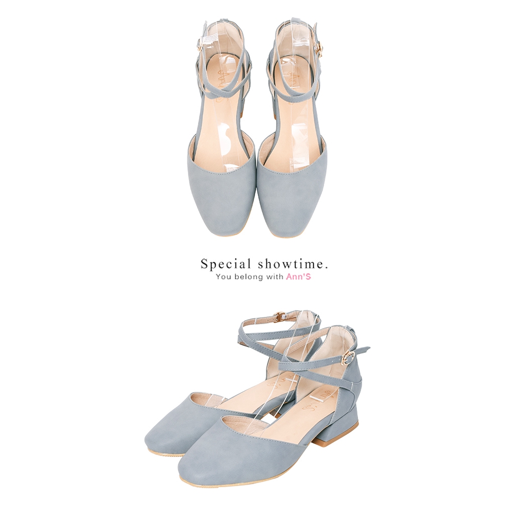 Ann’S重塑芭蕾-繫帶前交叉小方頭低跟鞋3cm-藍