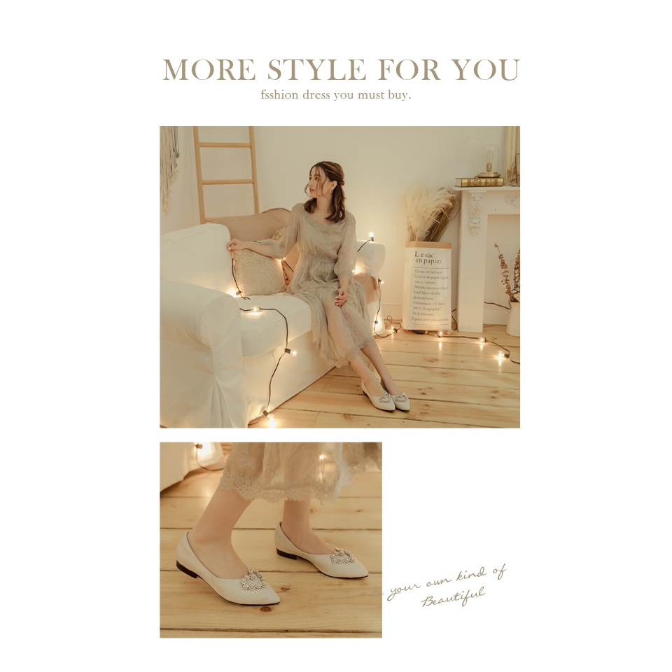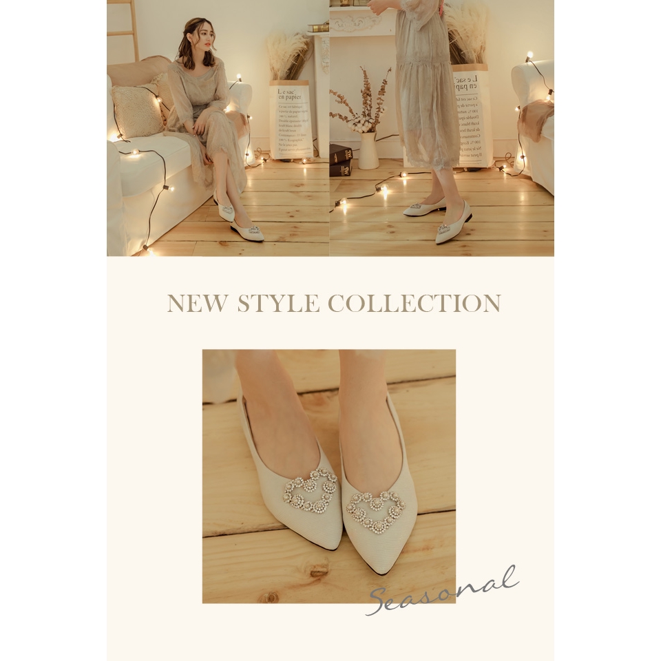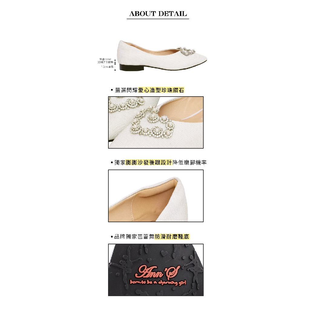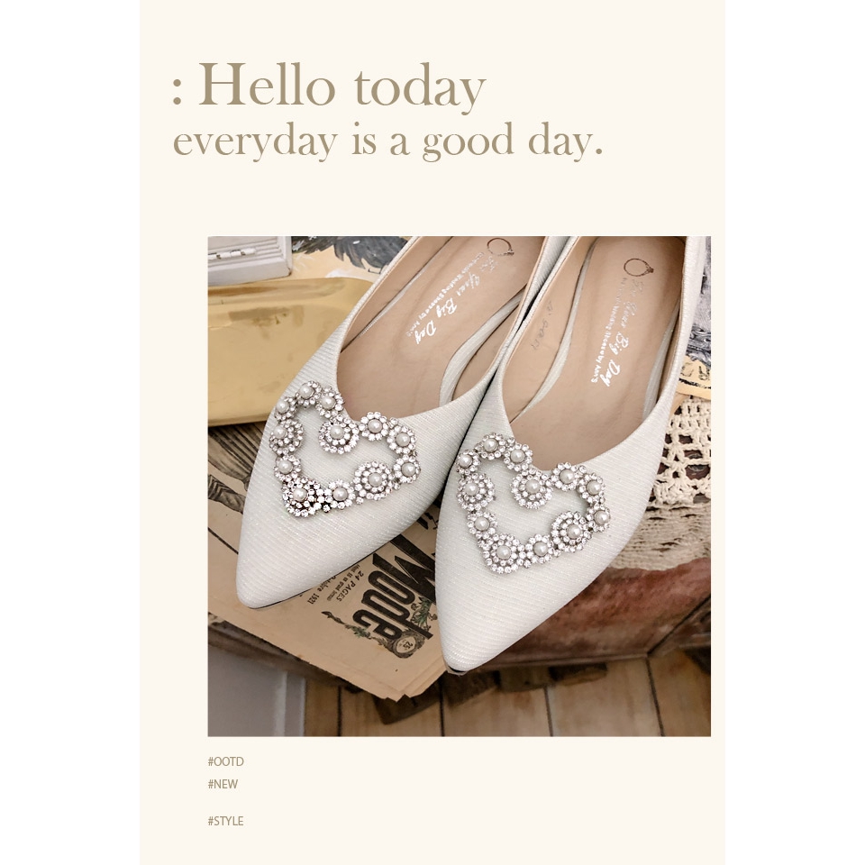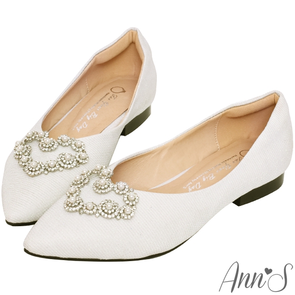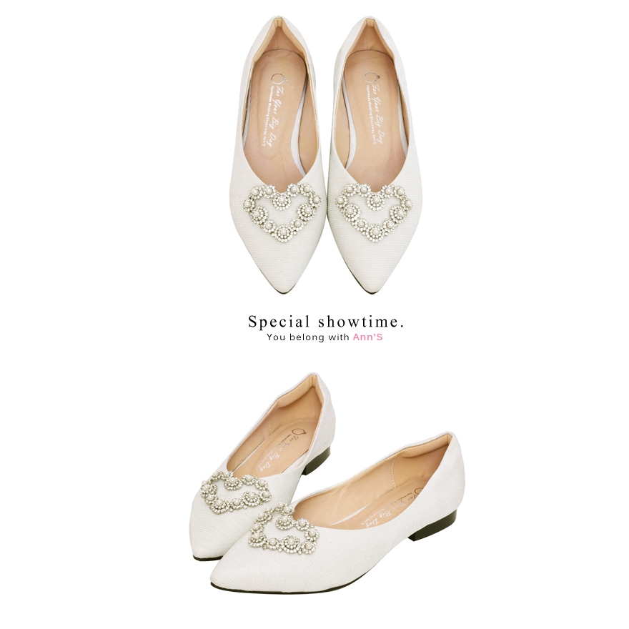 Ann’S愛情絮語-珍珠愛心V口尖頭平底婚鞋 -白