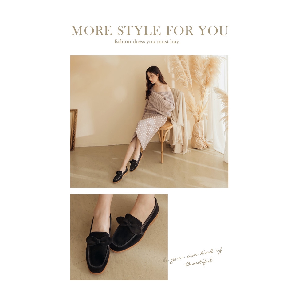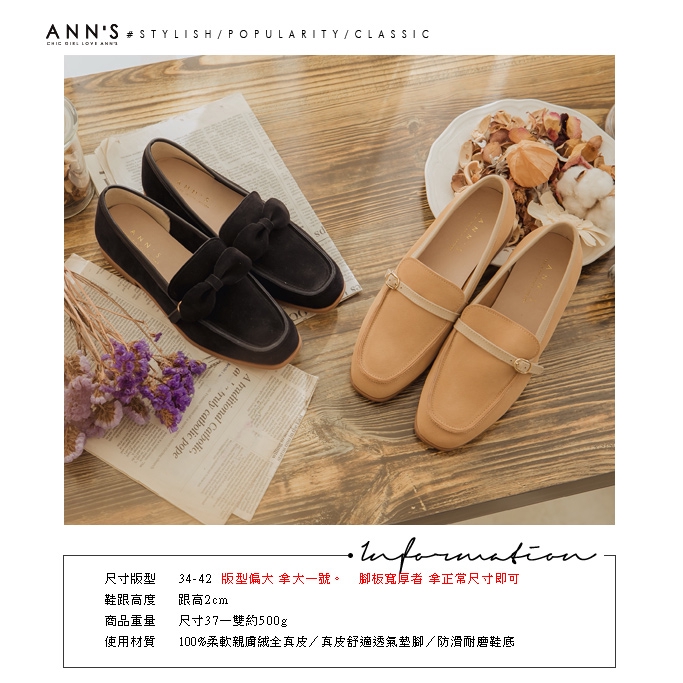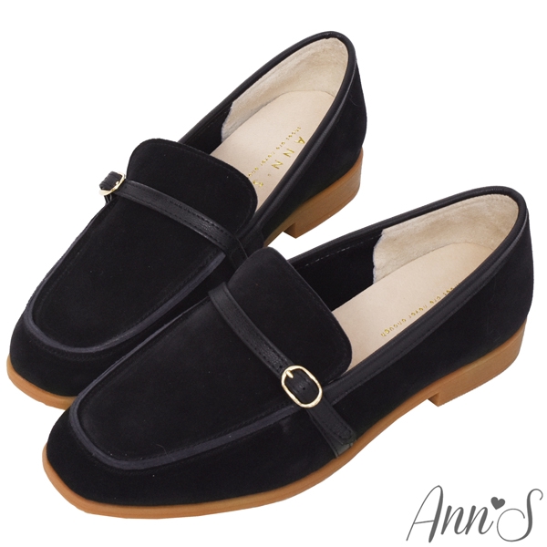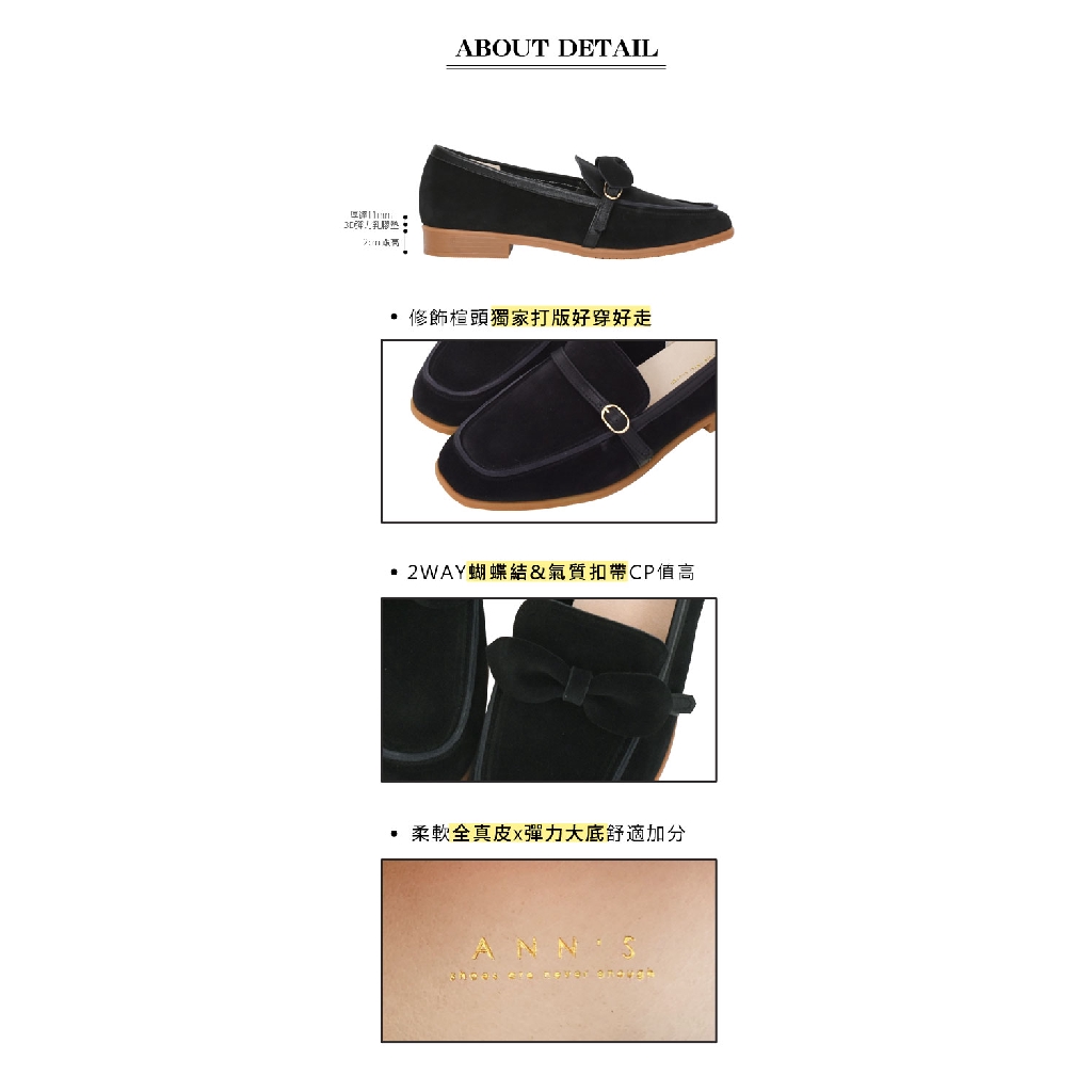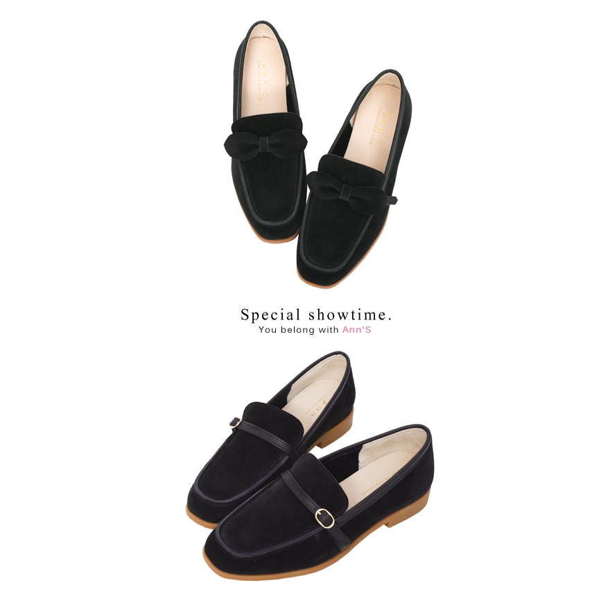 Ann’S輕甜girl-兩穿可拆蝴蝶結防潑水牛麂皮平底樂福鞋-黑