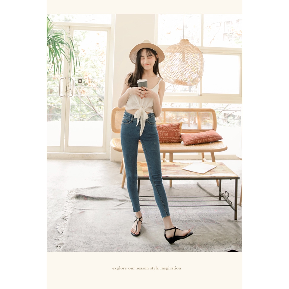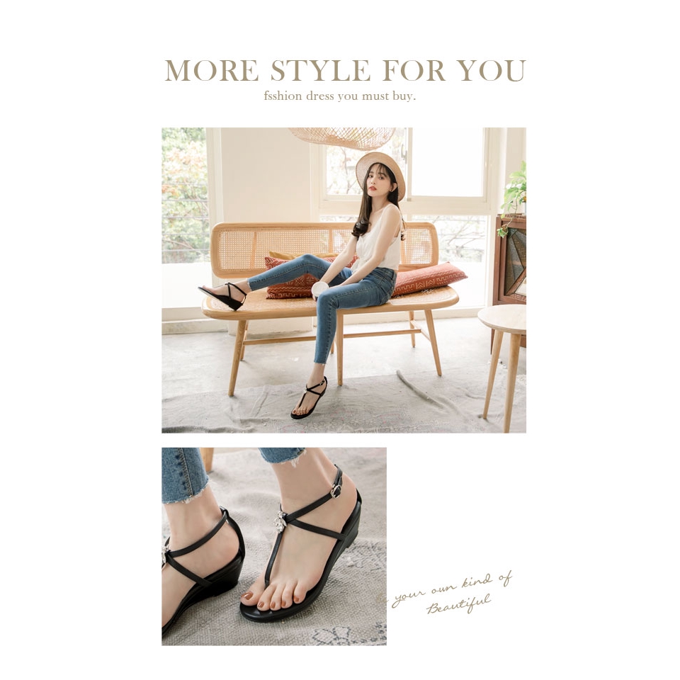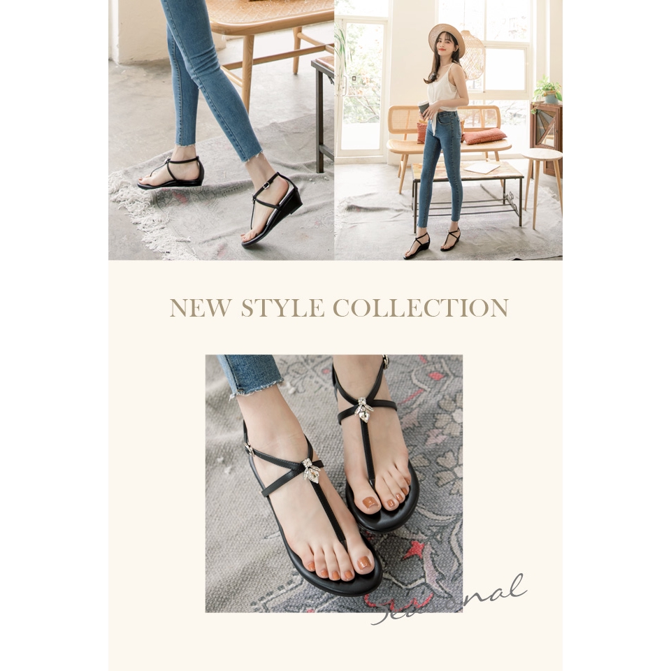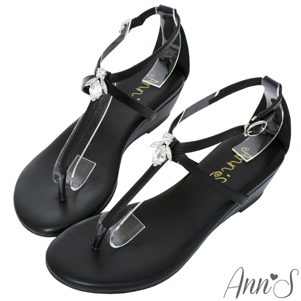 Ann’S花田小蜜蜂-水滴鑽飾T字交叉顯瘦小坡跟涼鞋-黑