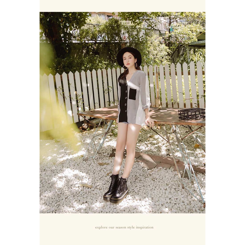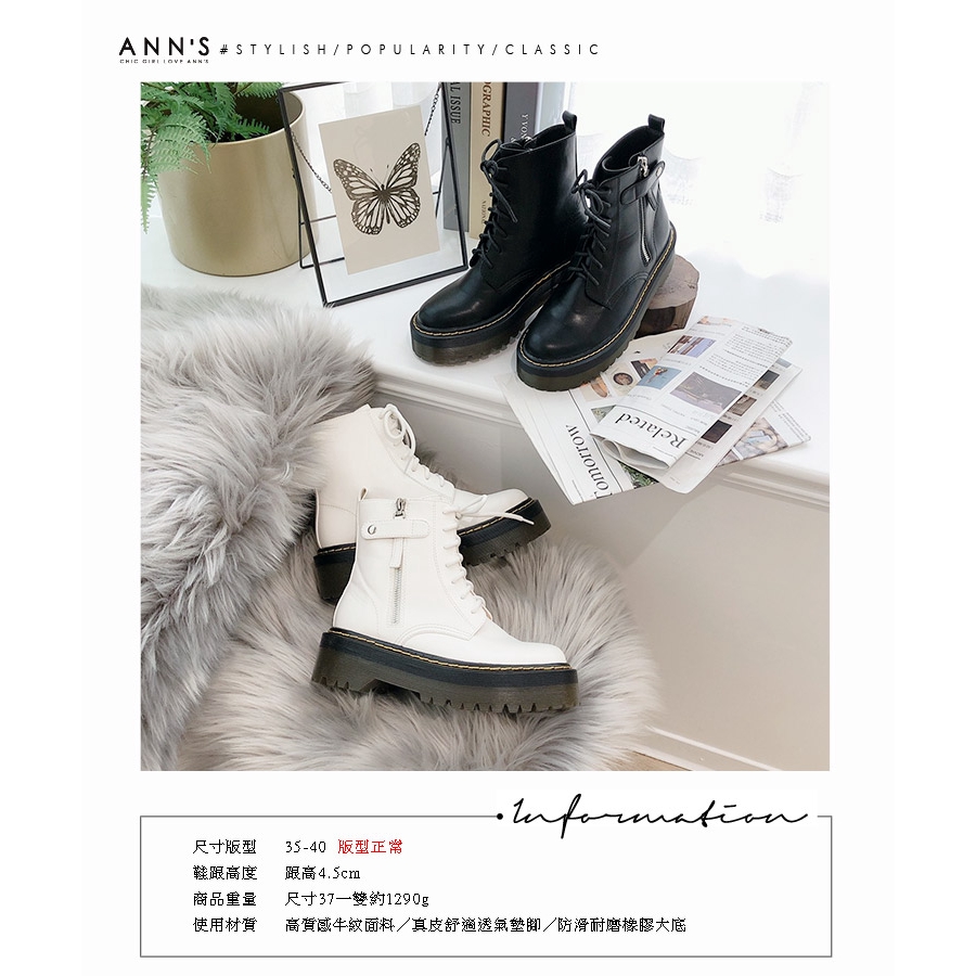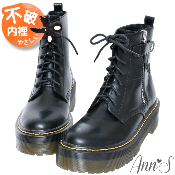 Ann’S韓星同款-臘繩綁帶側拉鍊厚底馬丁靴-黑