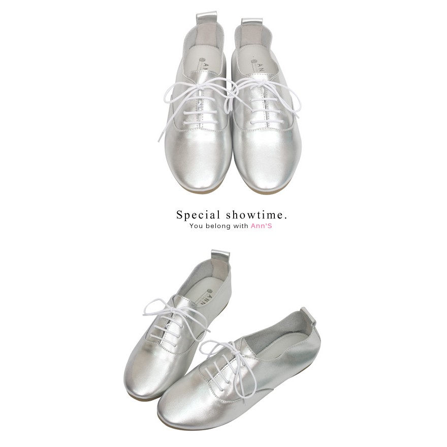 Ann’S全羊皮Q軟文青牛津英倫小白鞋-銀