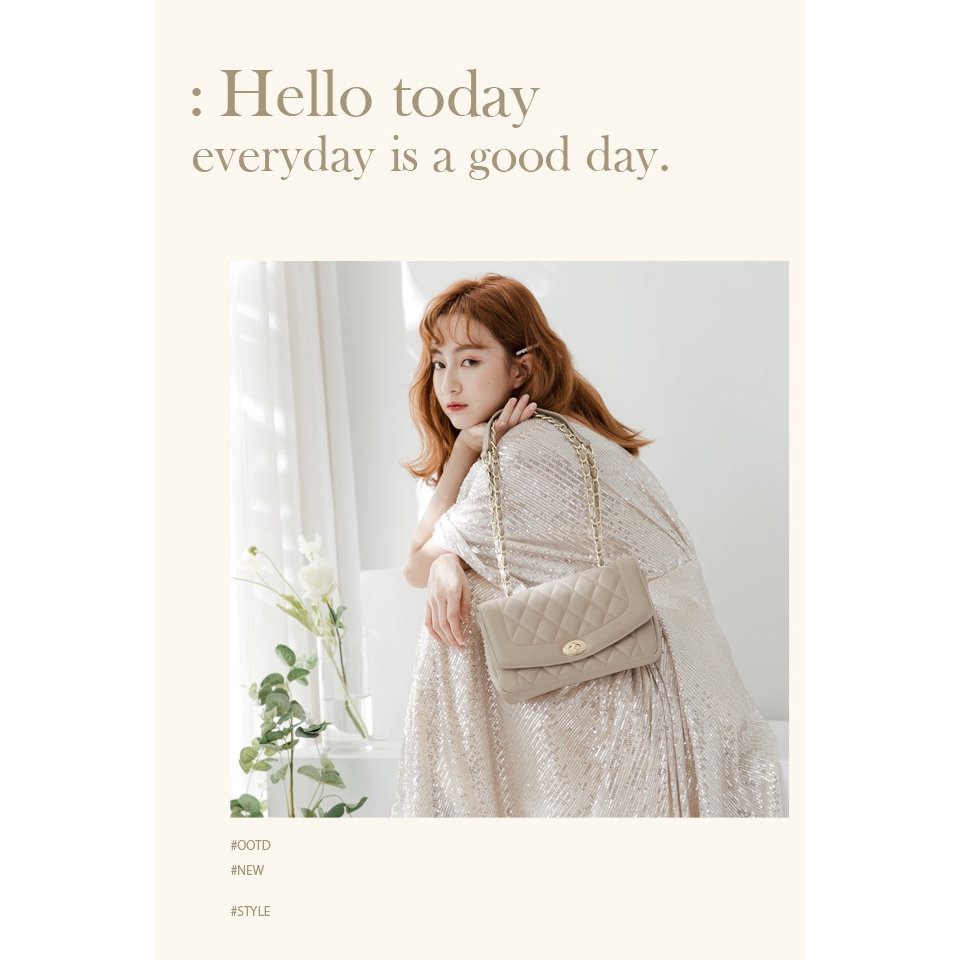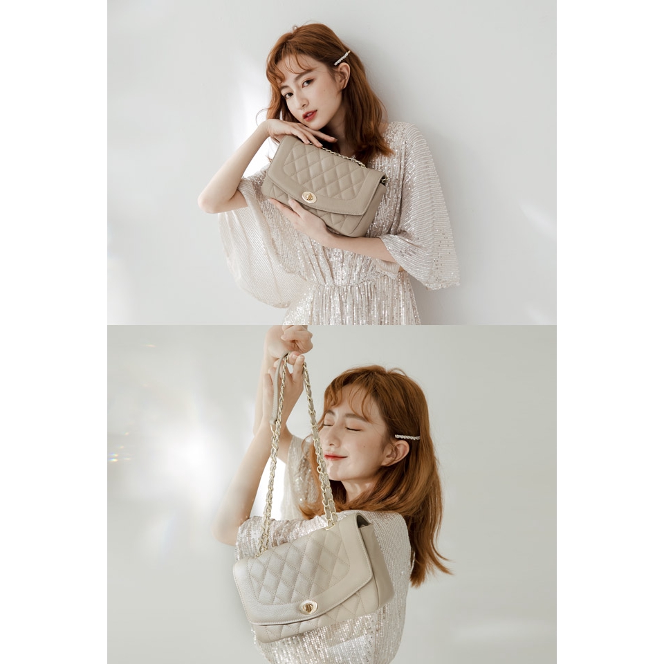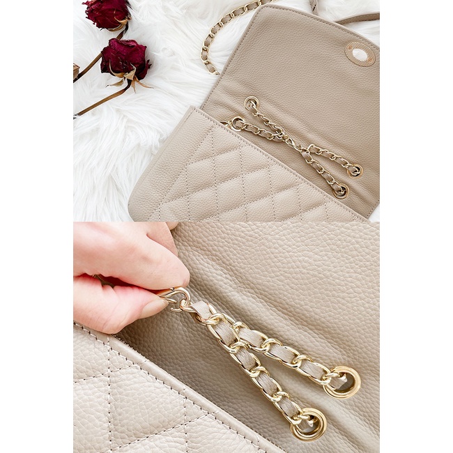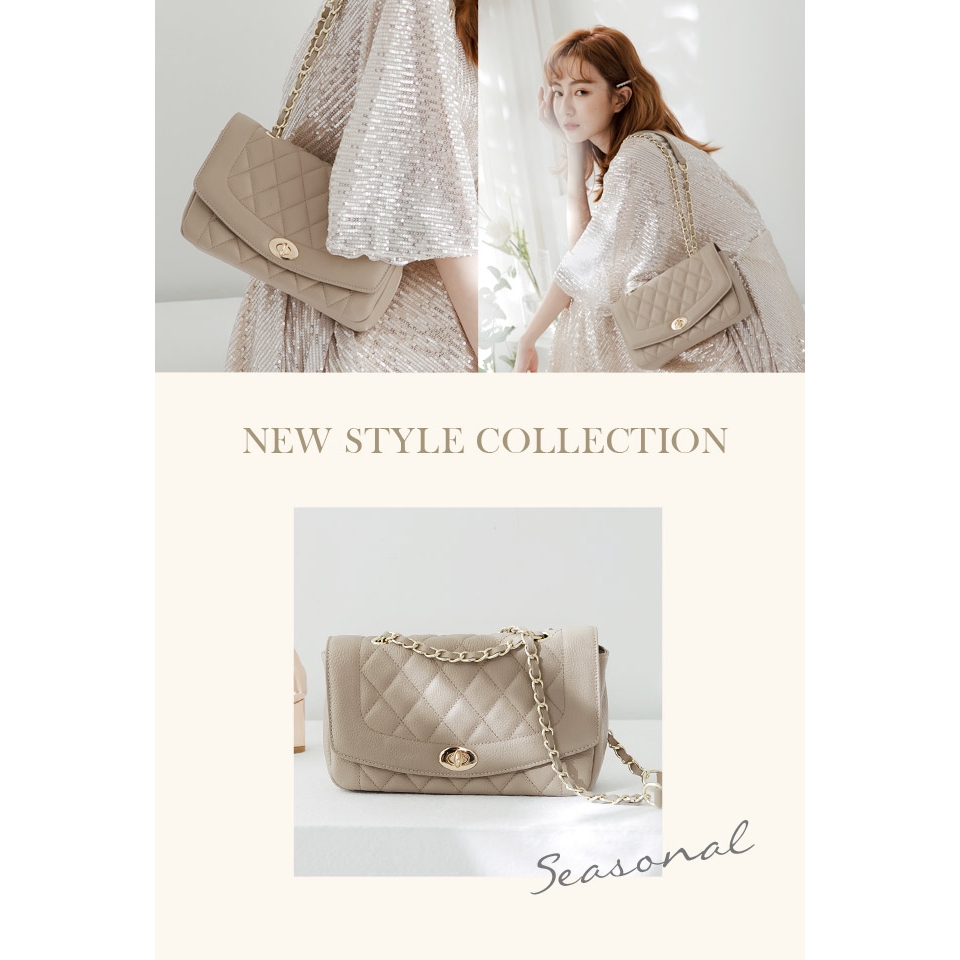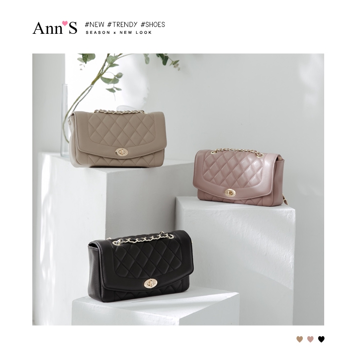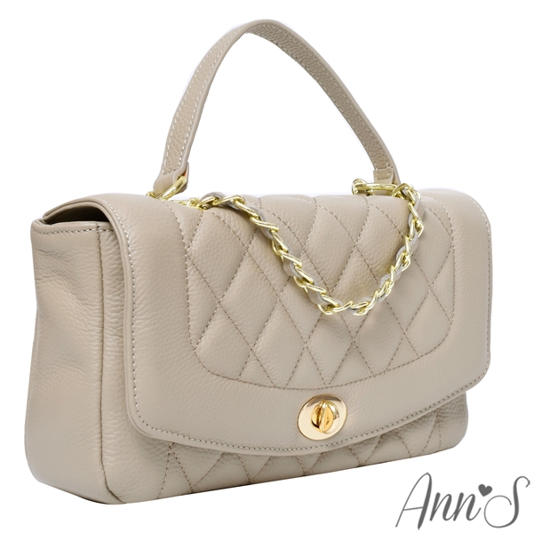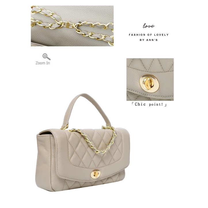 Ann’S優雅鍊帶真皮牛皮25經典黛妃包-杏