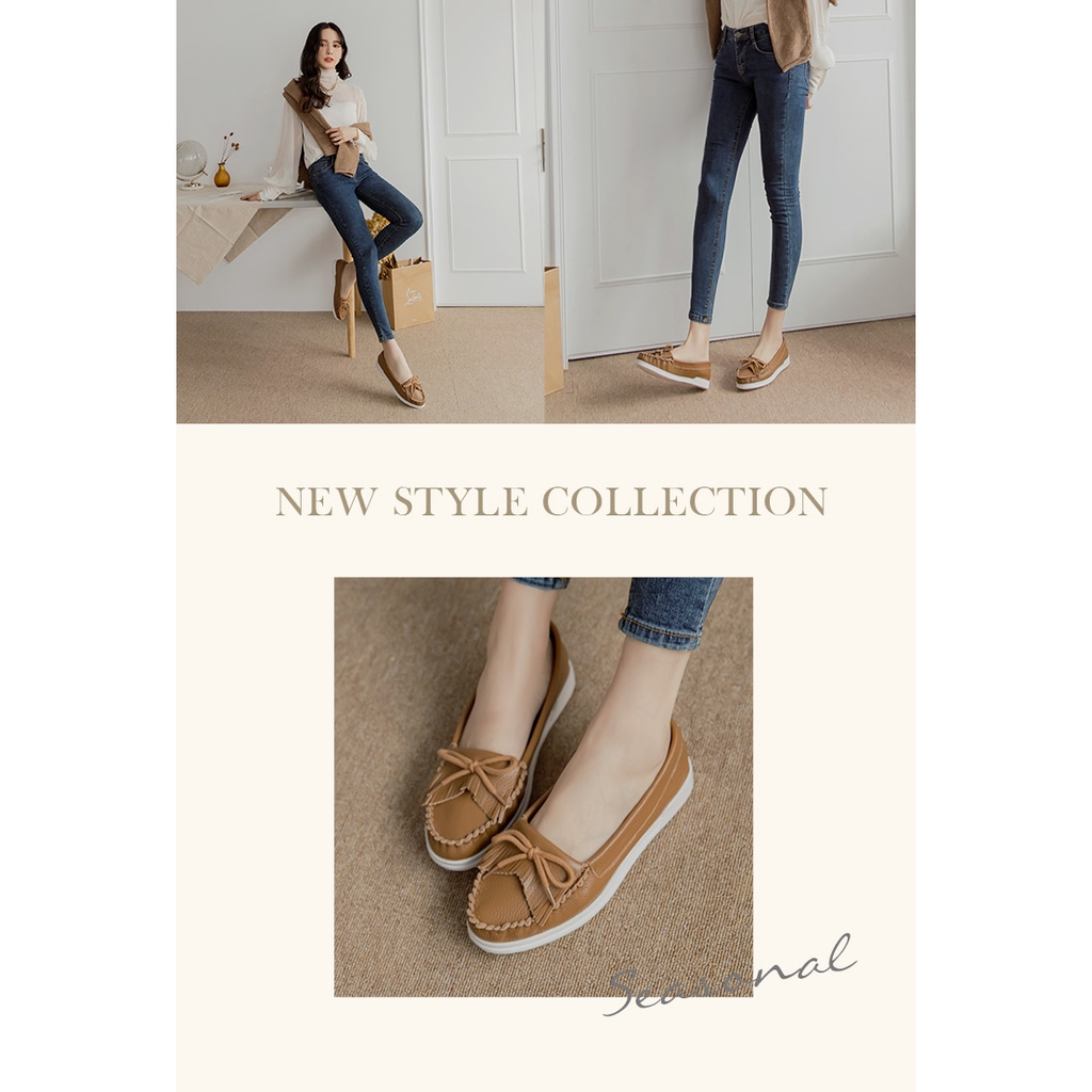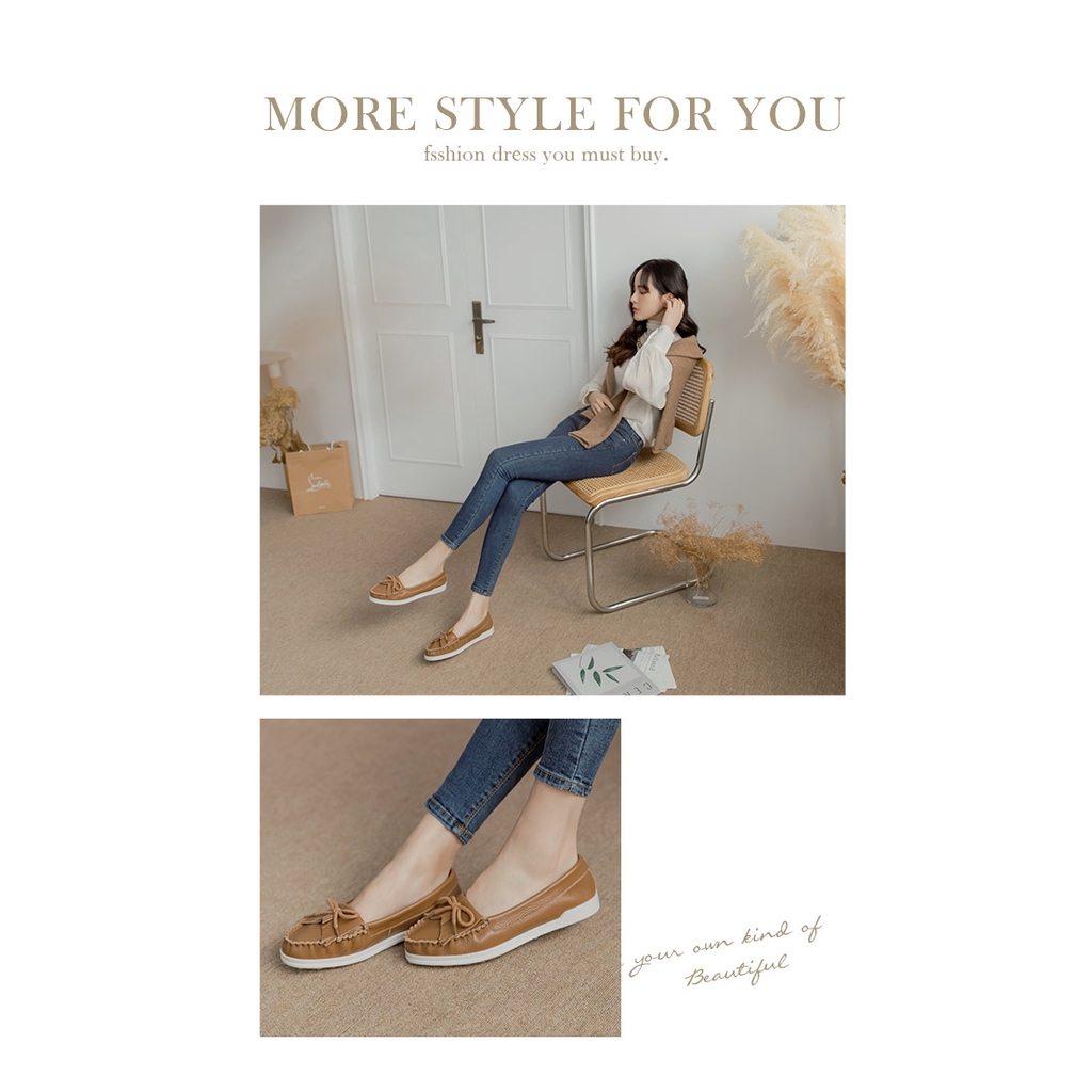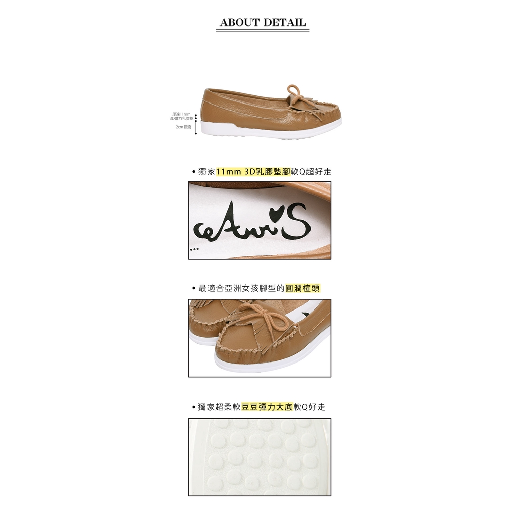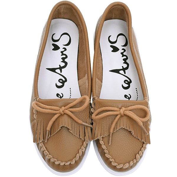 Ann’S第一代柔軟全真牛皮流蘇蝴蝶結小白鞋-咖