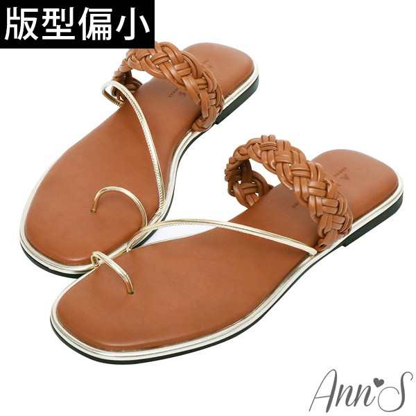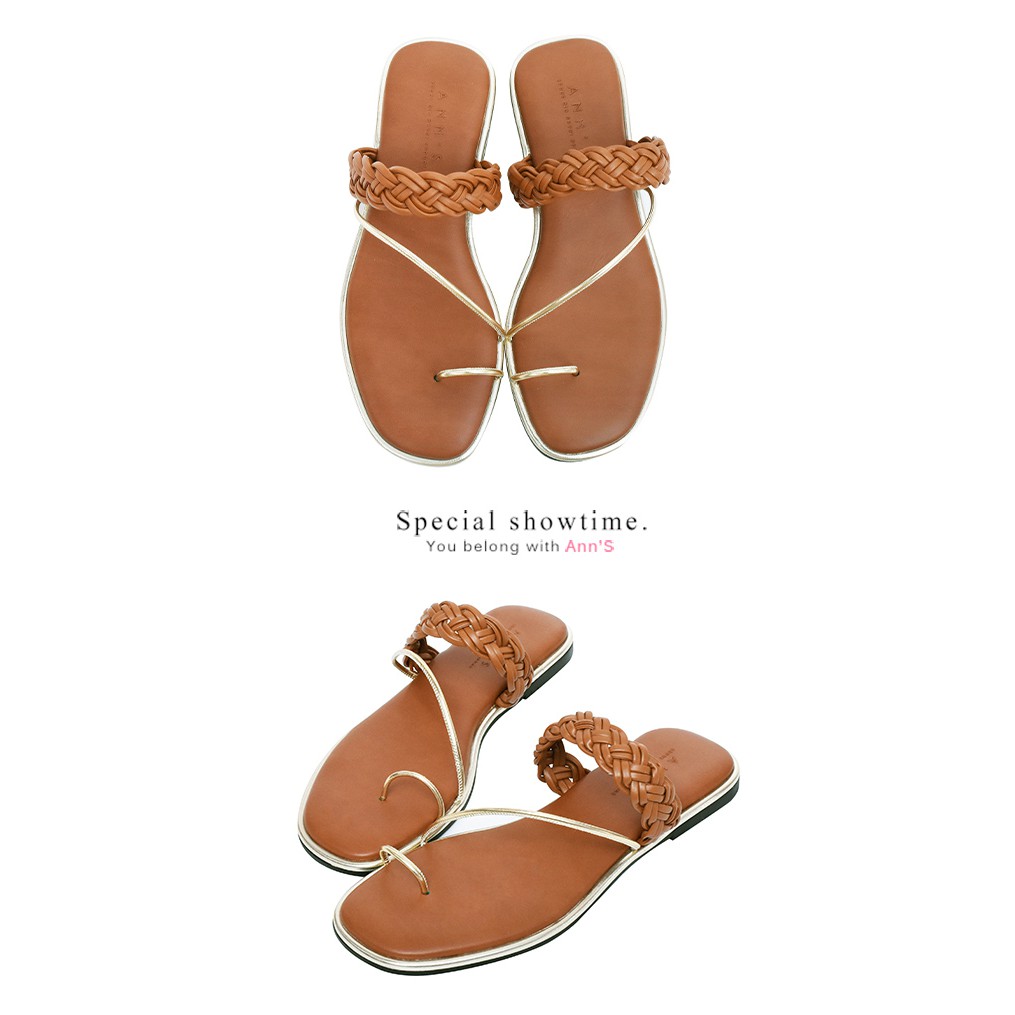 Ann’S微時髦-套指軟金屬細帶編織寬版方頭平底涼拖鞋-棕(版型偏小)