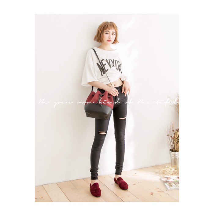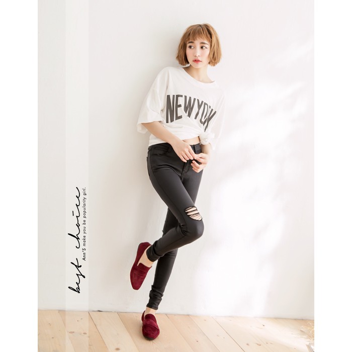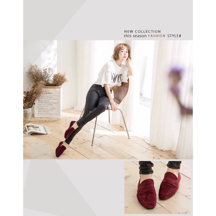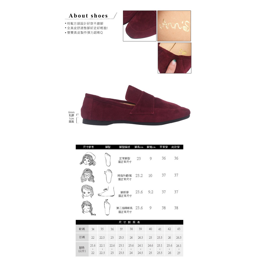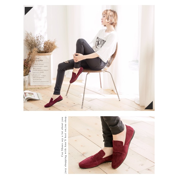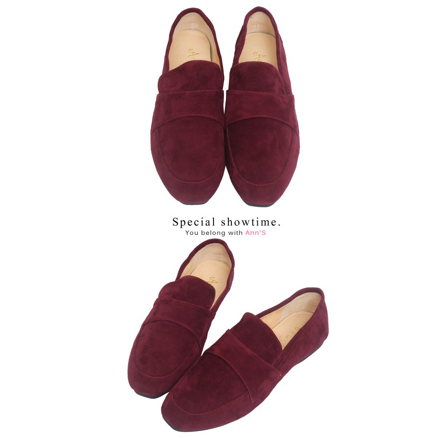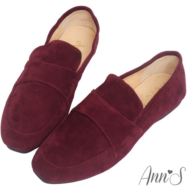 Ann’S韓系素面Q彈超柔軟全真皮天堂懶人平底鞋-酒紅