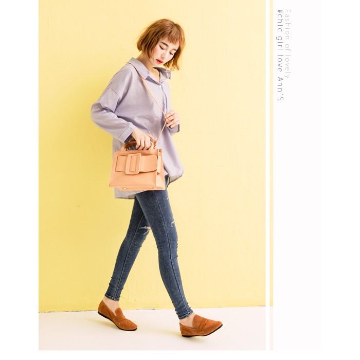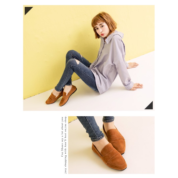 Ann’S韓系素面Q彈超柔軟全真皮天堂懶人平底鞋-棕