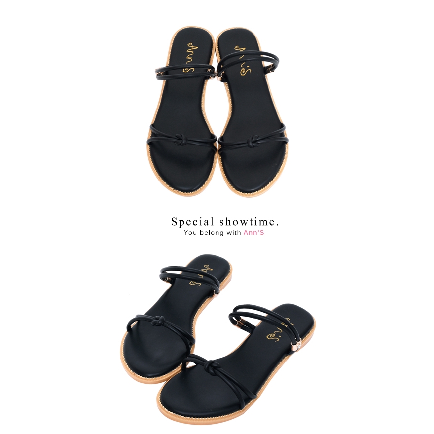 Ann’S微糖小文青-扭結可兩穿寬版平底涼鞋-黑