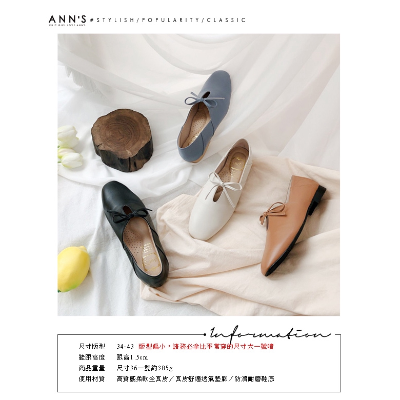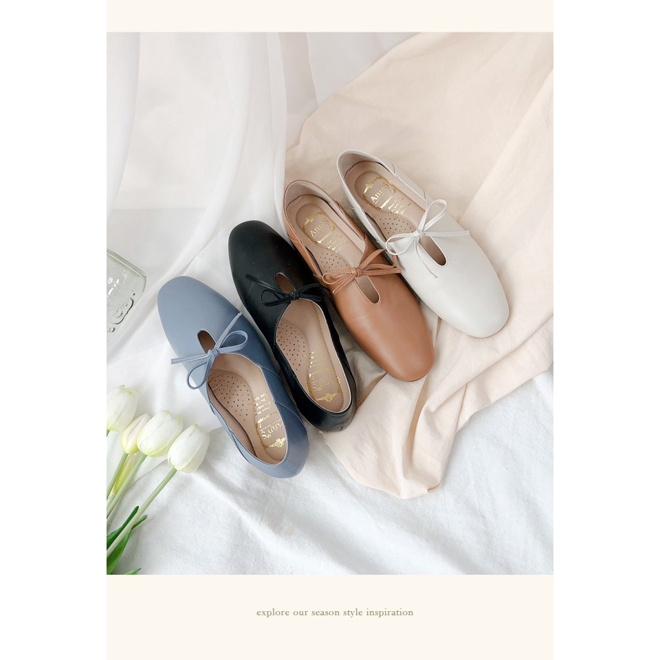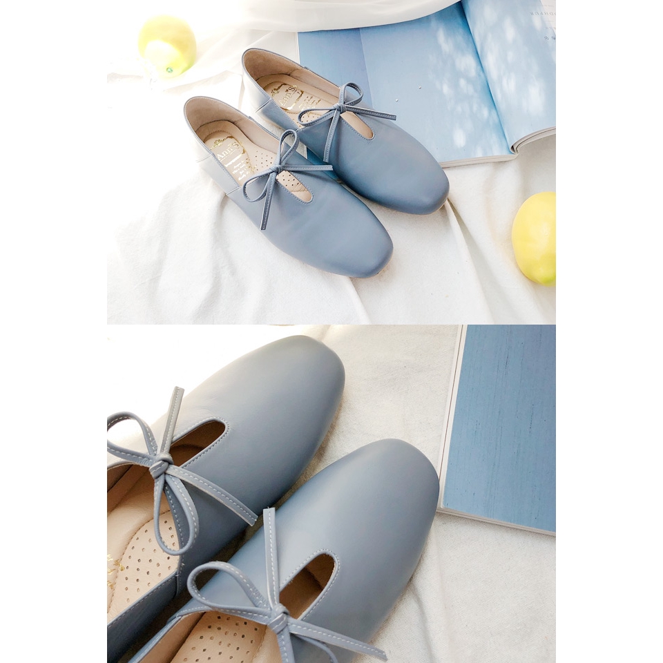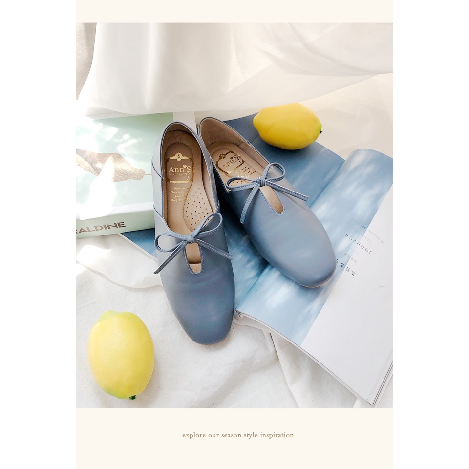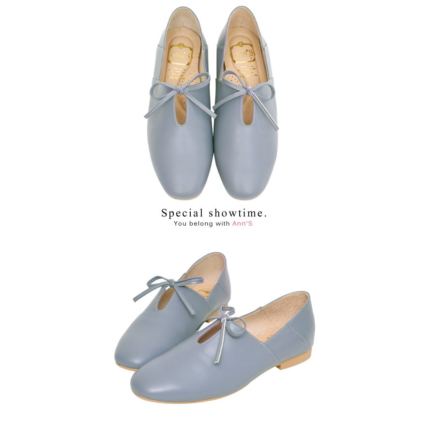 Ann’S超柔軟綿羊皮-芭蕾蝴蝶結兩穿穆勒平底便鞋-藍