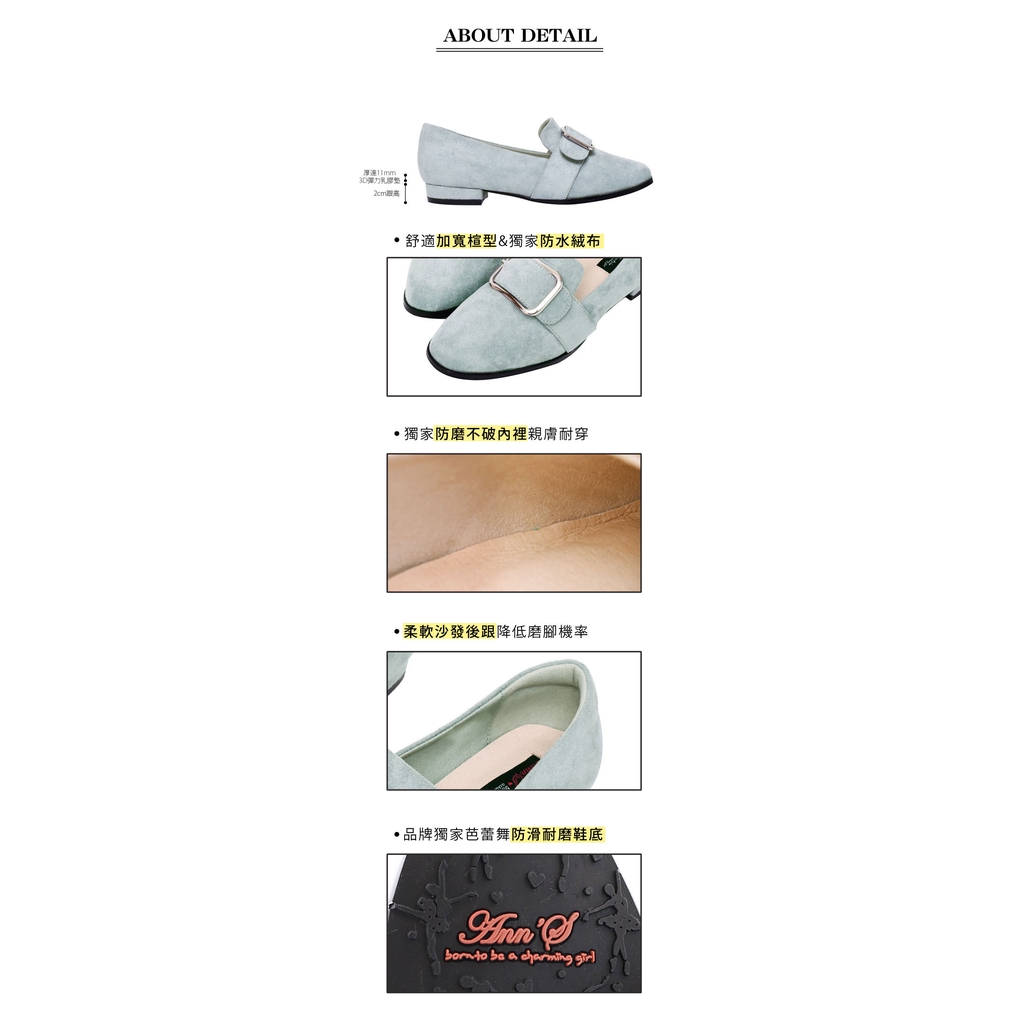 Ann’S韓式文青-防水絨布版本金屬圓弧方扣樂福平底鞋-淺藍