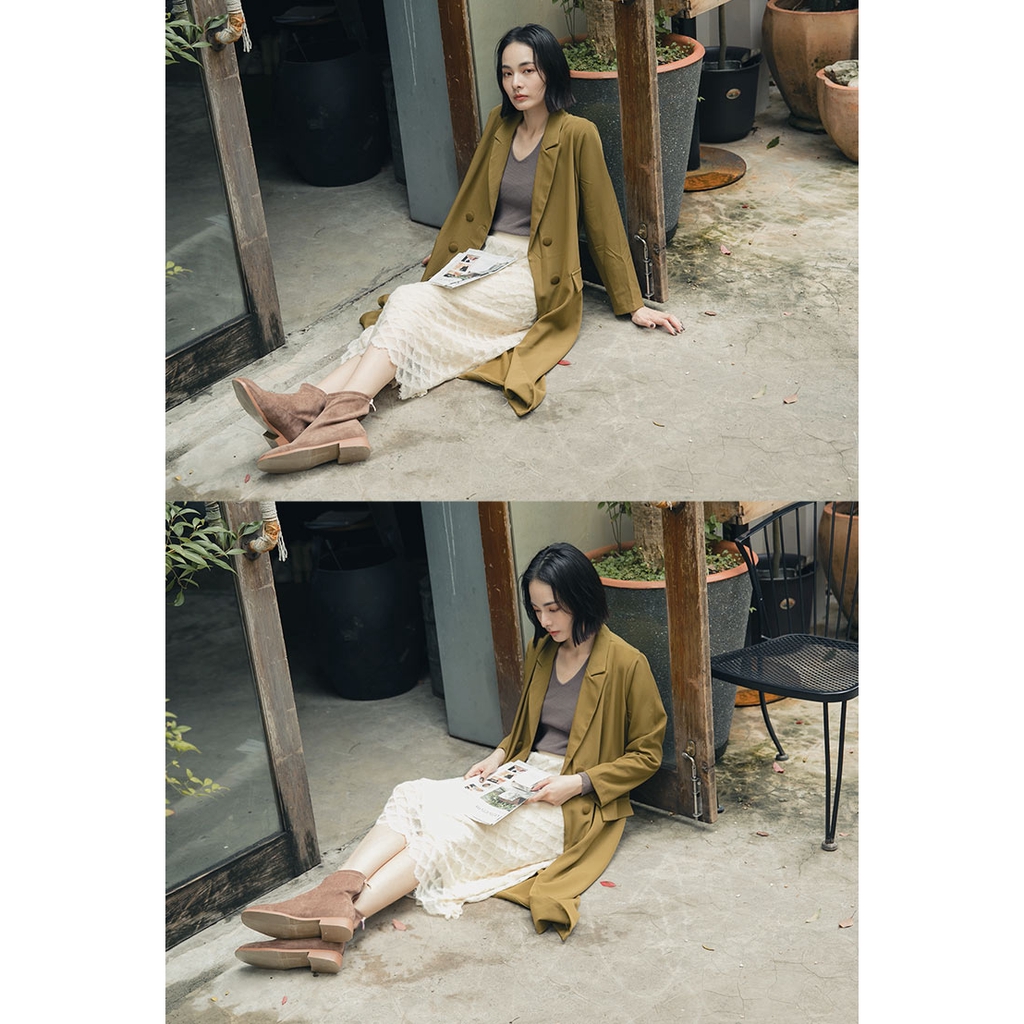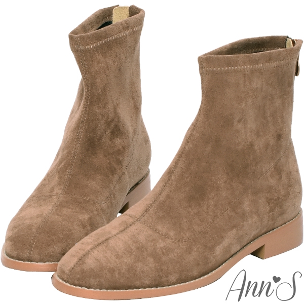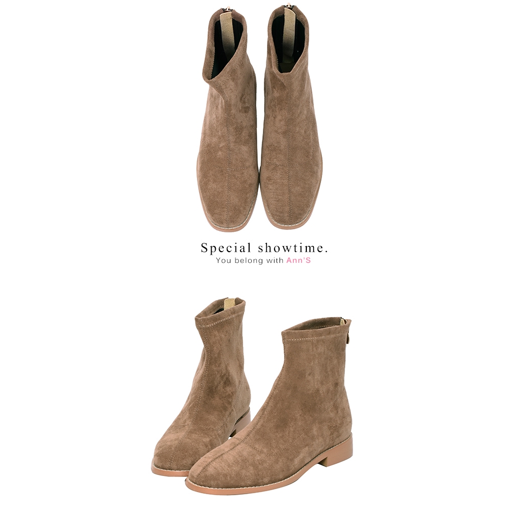 Ann’S高個子女孩看這裡-獨家方楦防水絨布素面平底短靴-可可