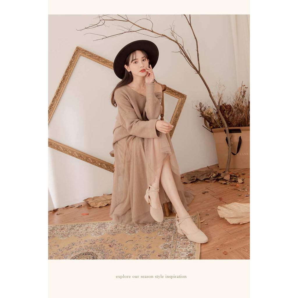 Ann’S重塑芭蕾-繫帶前交叉小方頭低跟鞋3cm-杏
