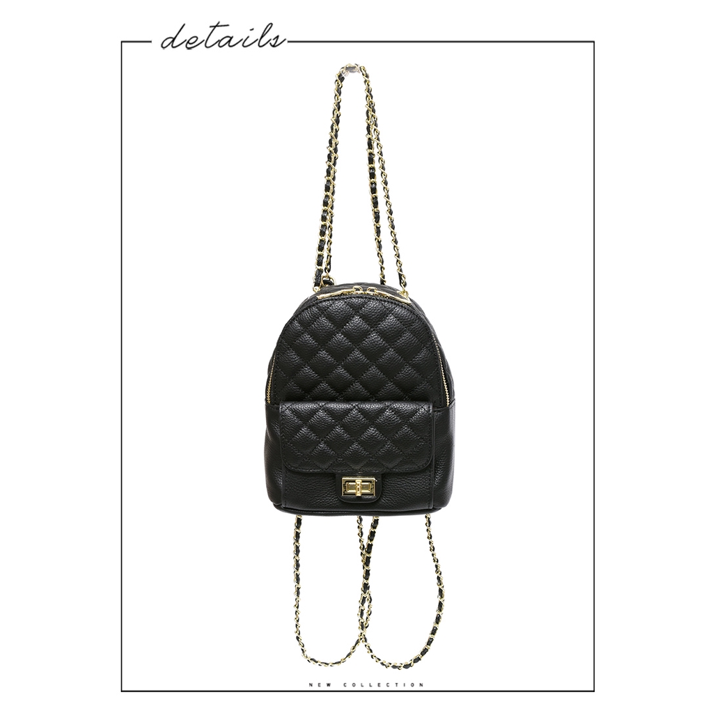 Ann’S全真皮牛皮菱格車線金鍊迷你後背包-黑