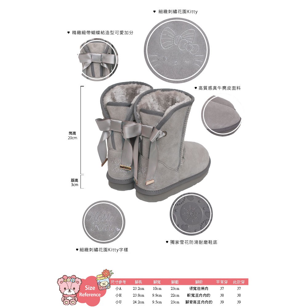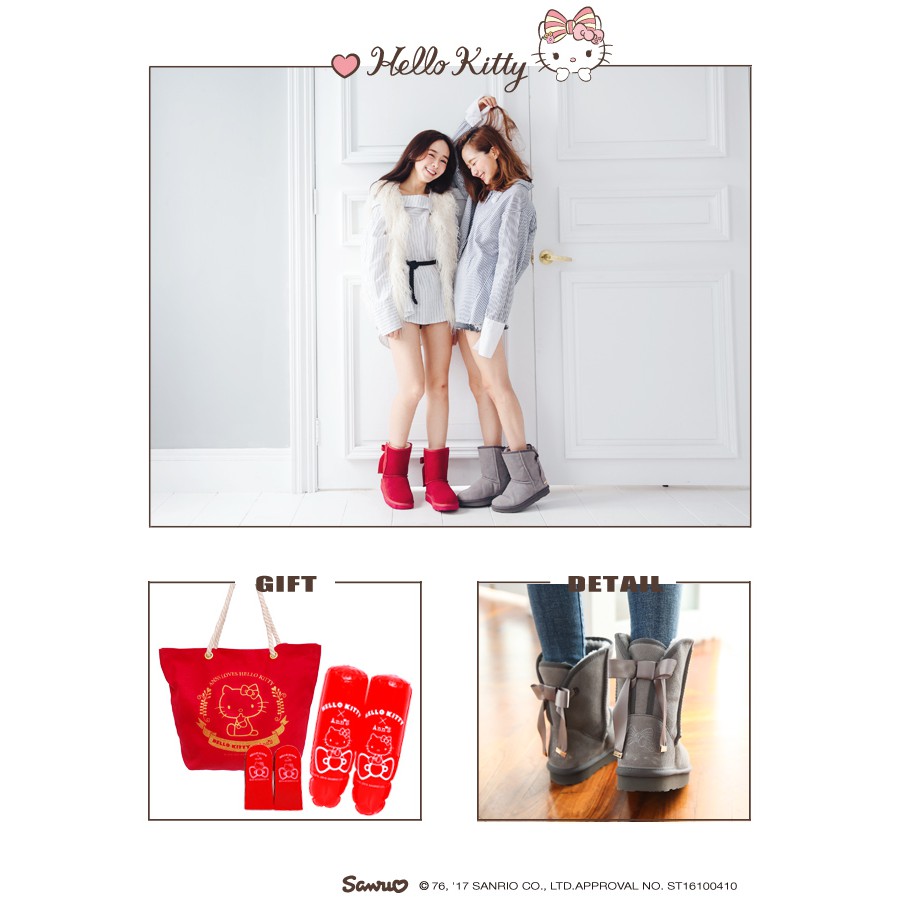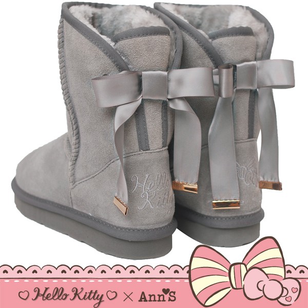 HELLO KITTY X Ann'S皇家緞帶刺繡真皮雪靴禮盒-灰