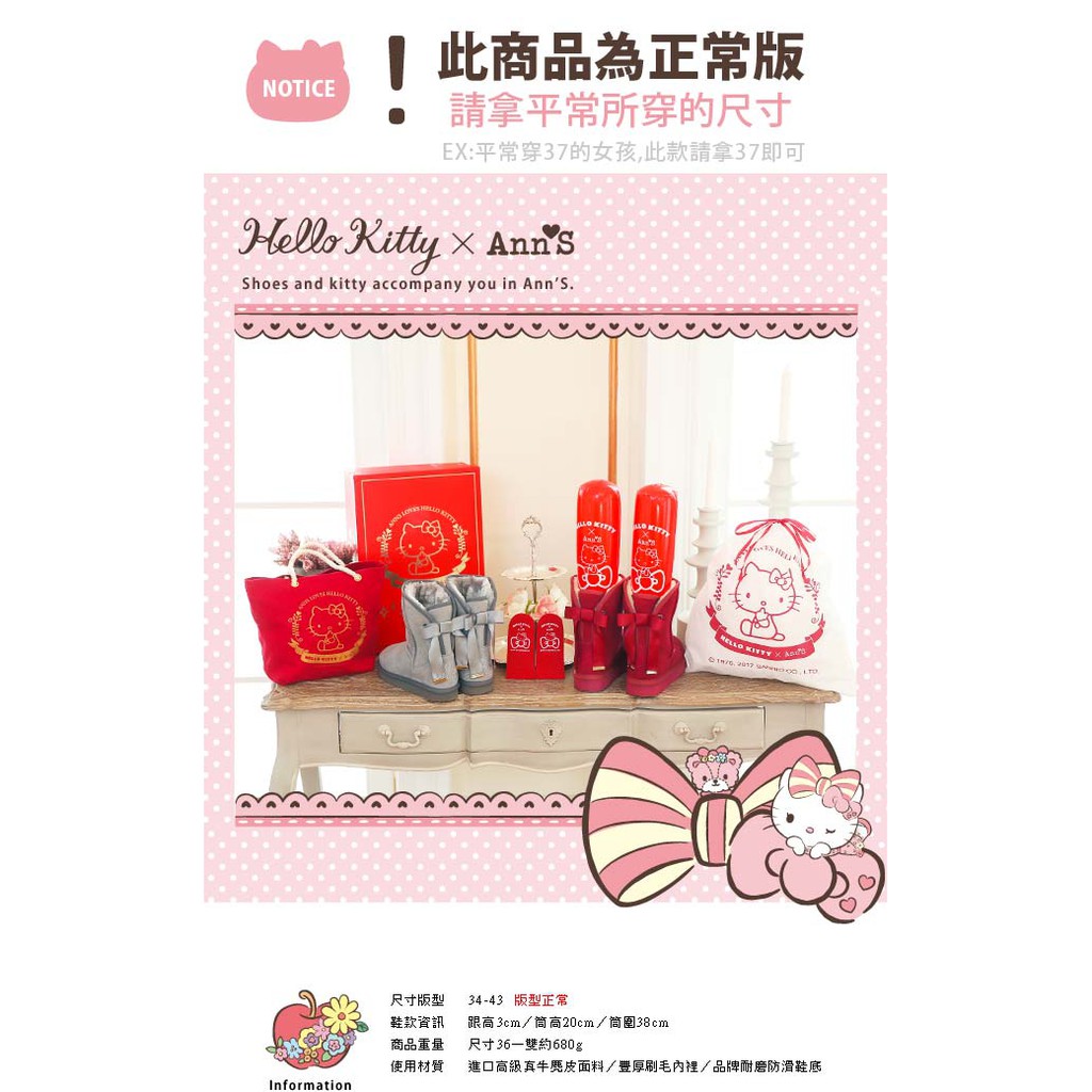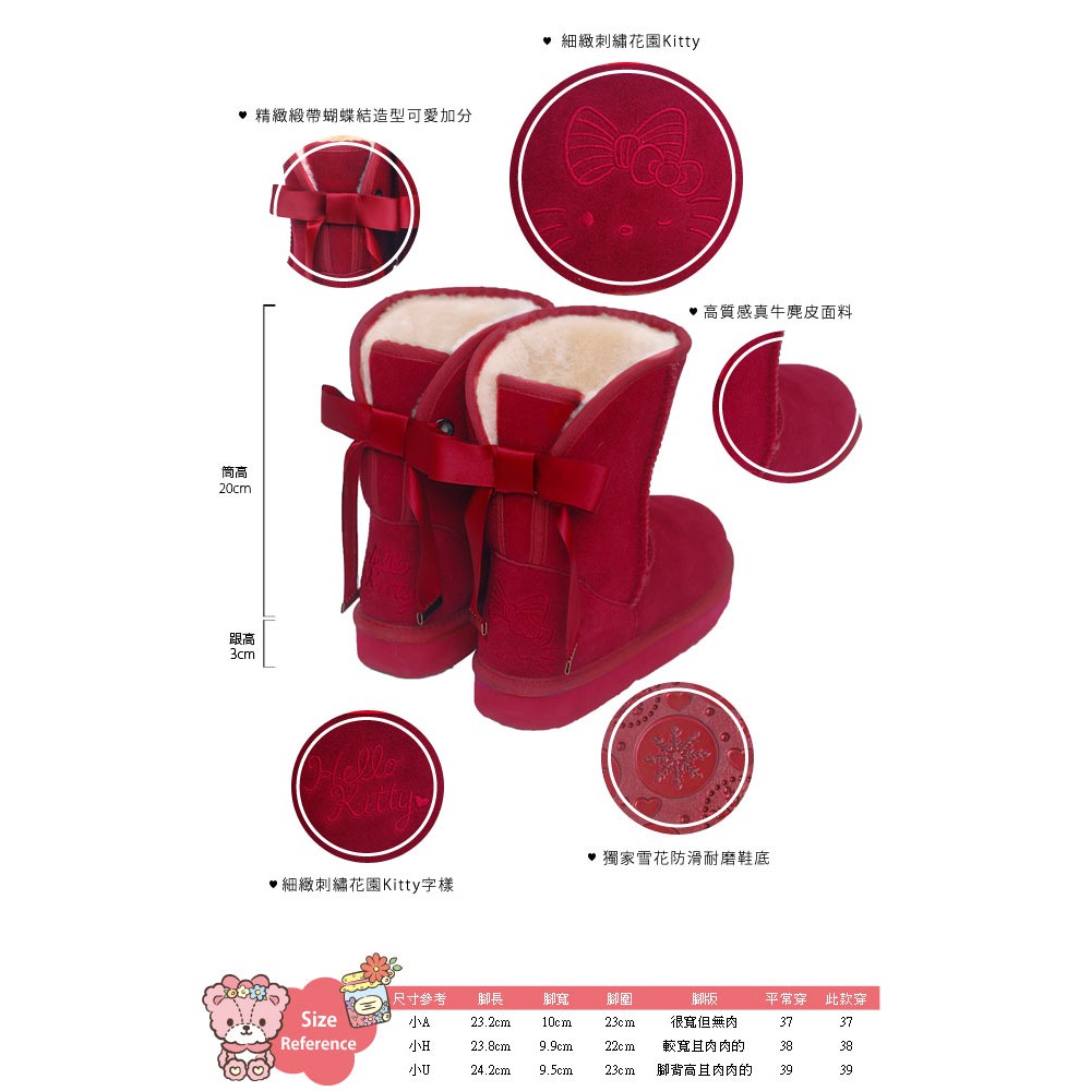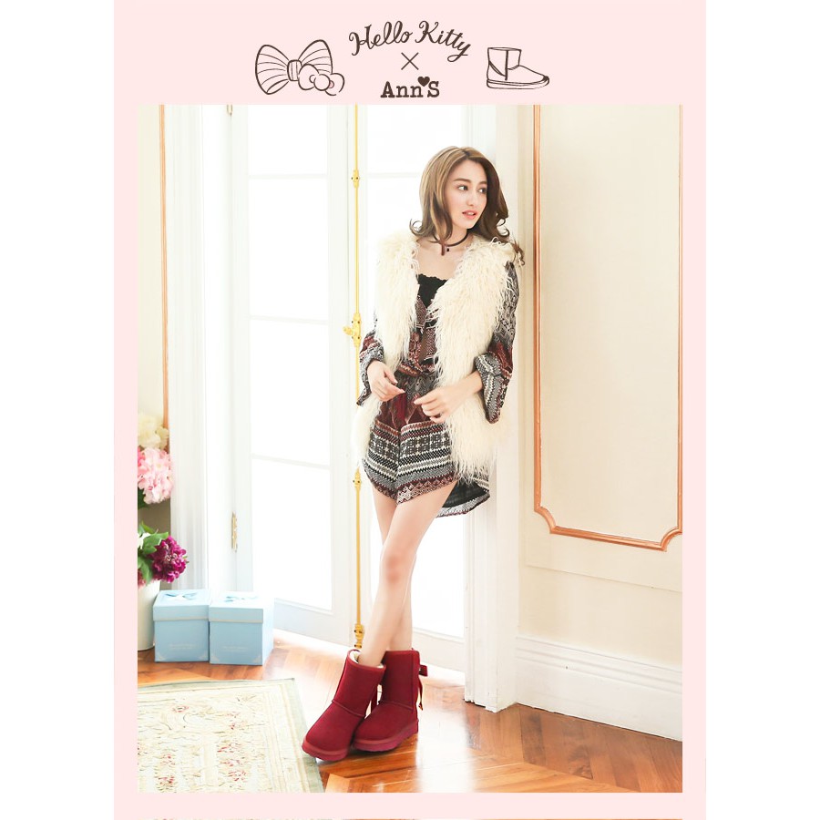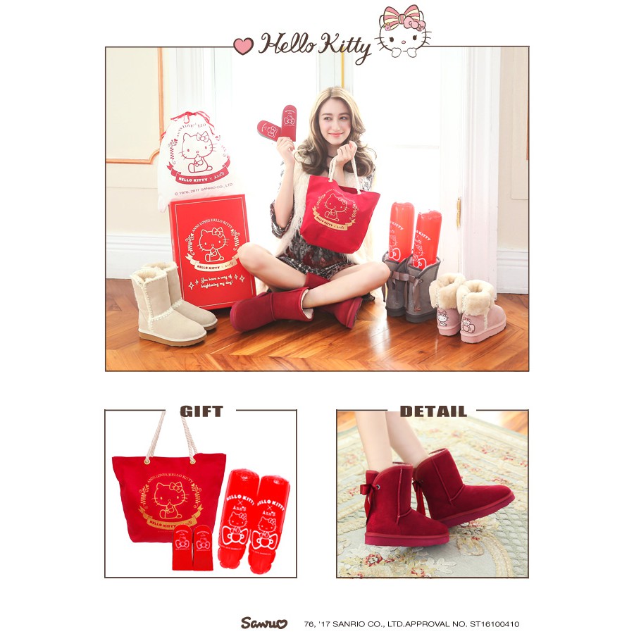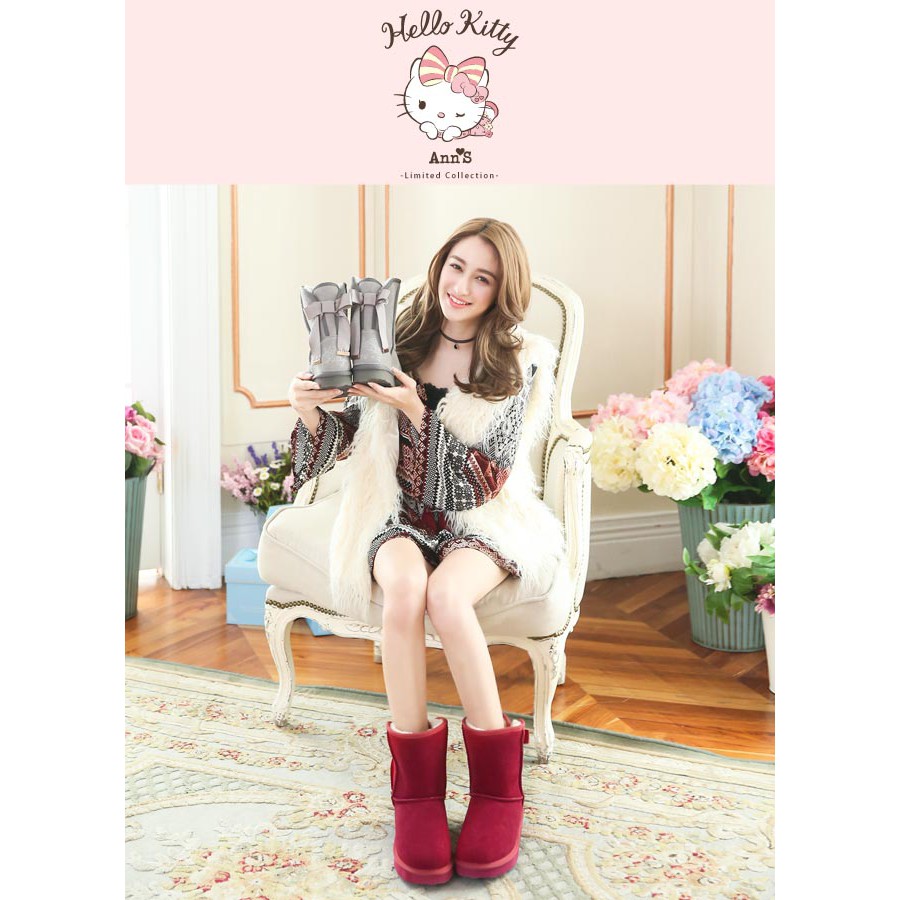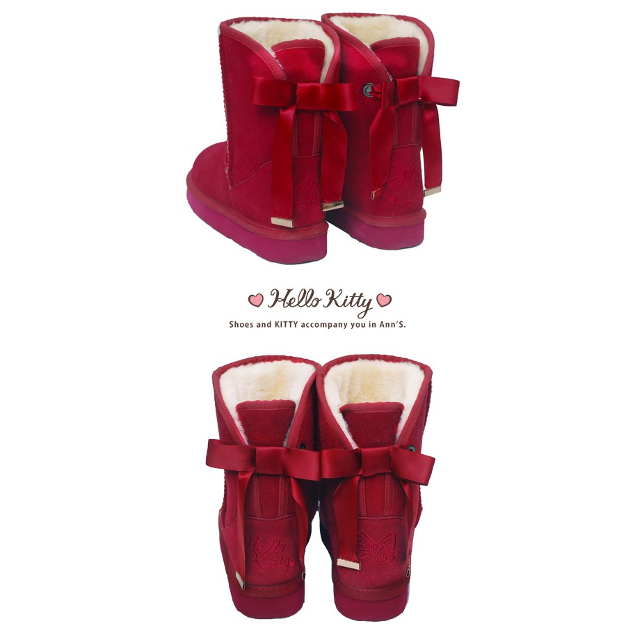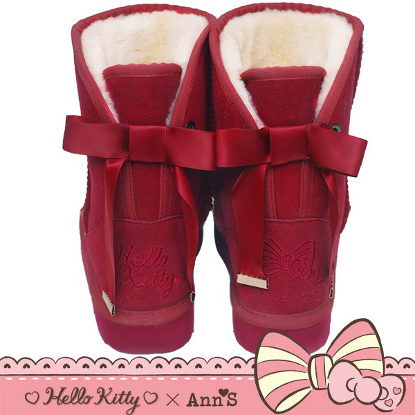HELLO KITTY X Ann'S皇家緞帶刺繡真皮雪靴禮盒-酒紅