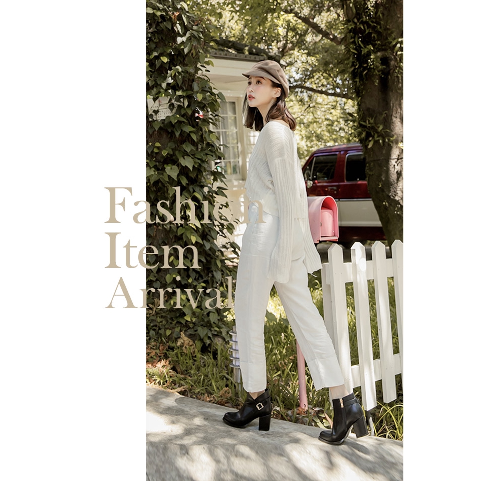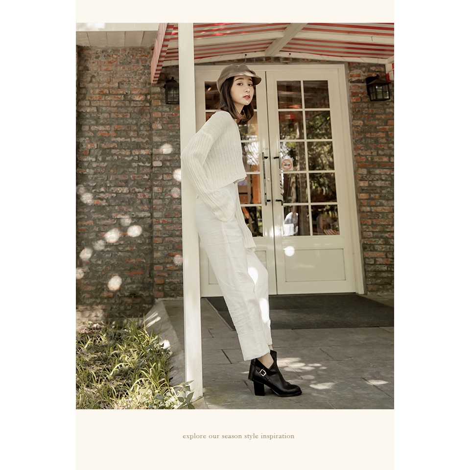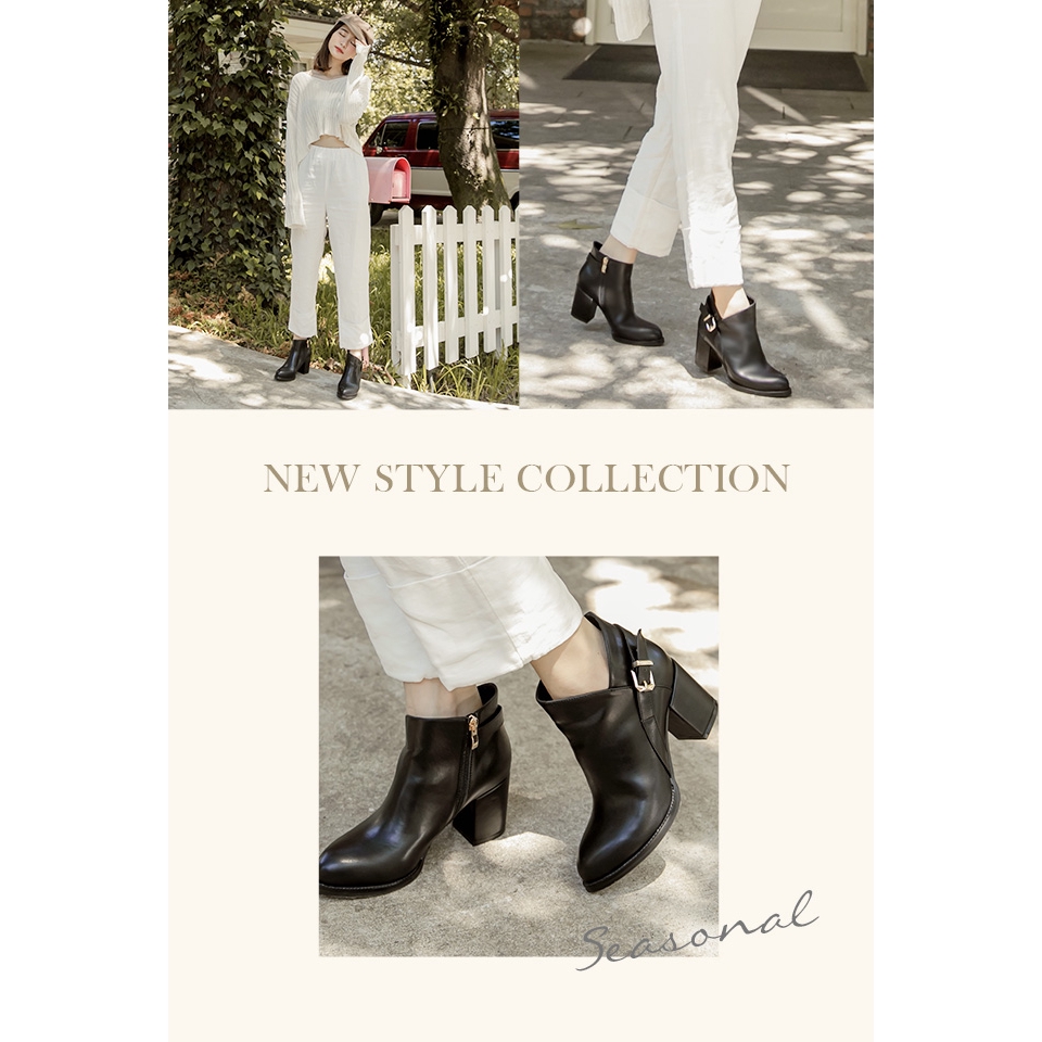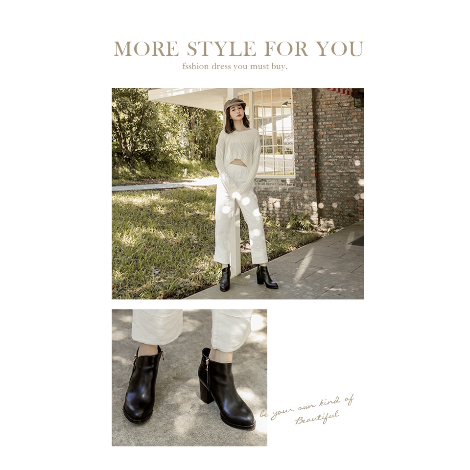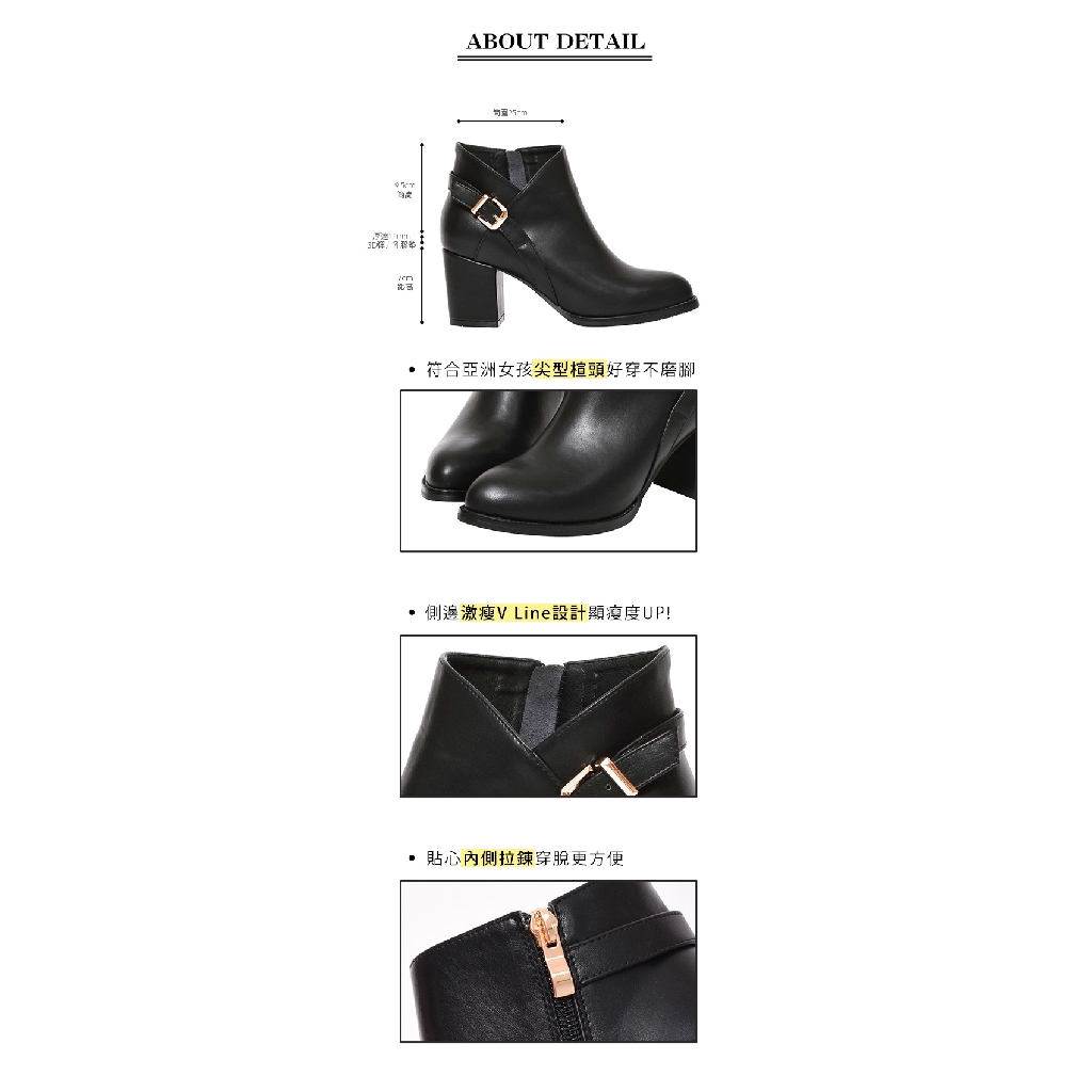Ann’S激瘦密語-側V後金方釦美型粗跟高跟短靴-黑