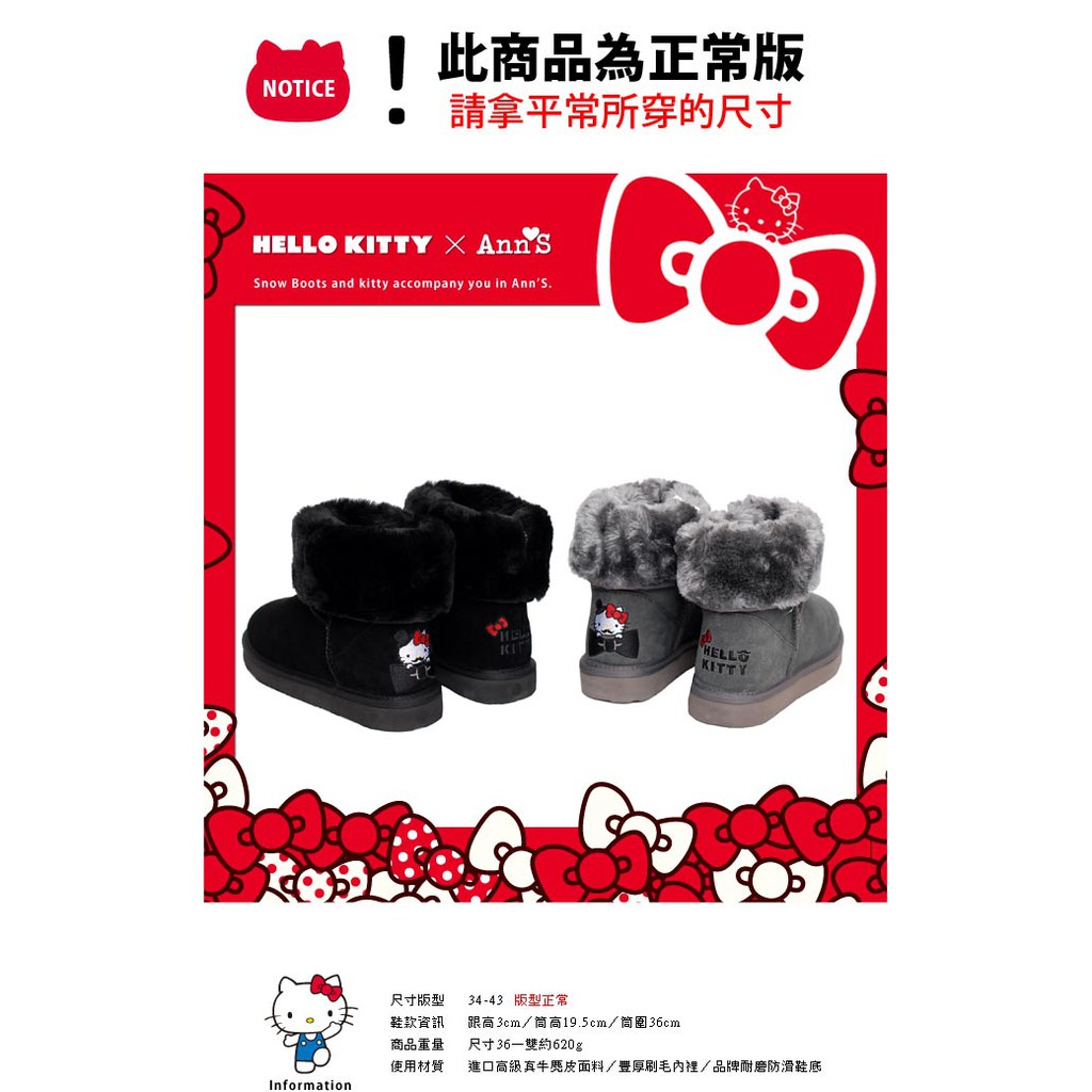HELLO KITTY X Ann’S 俏皮達利真皮雪靴禮盒-灰