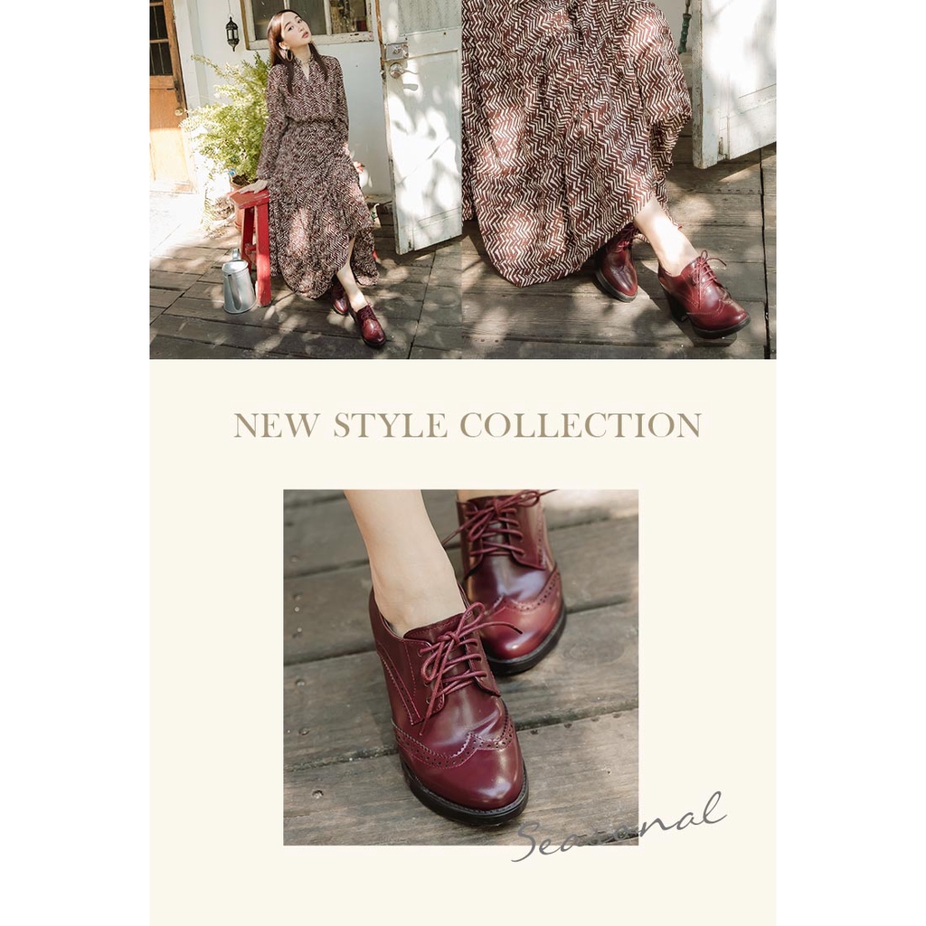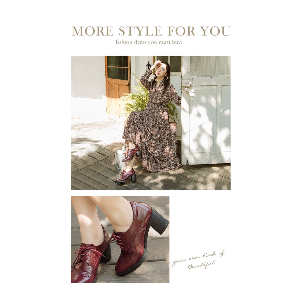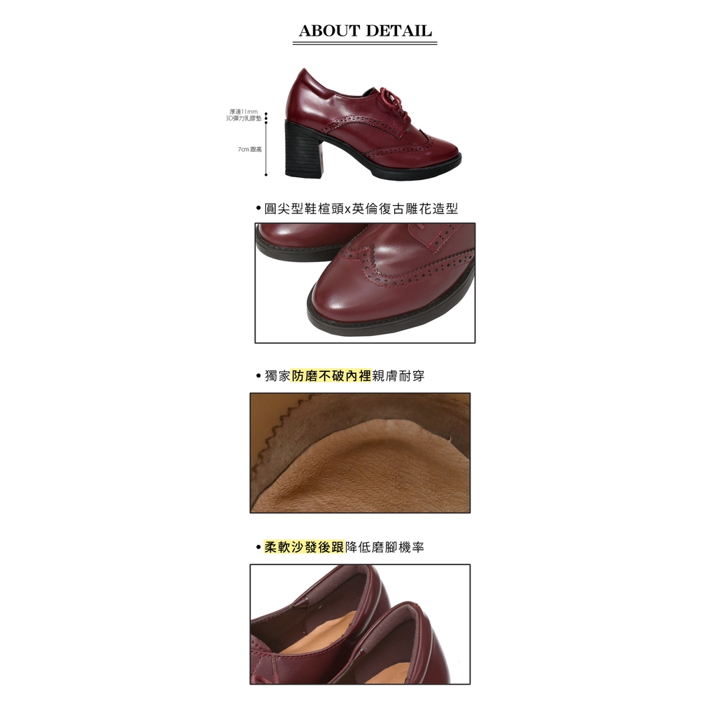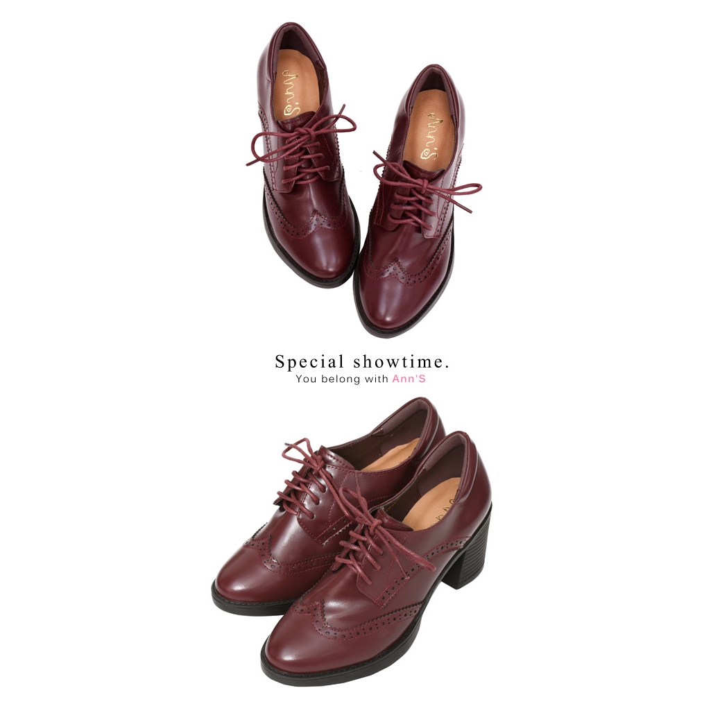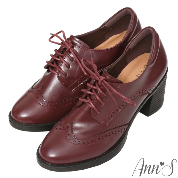 Ann’S英倫甜心2.0厚底-綁帶牛津雕花粗跟踝靴7cm-酒紅