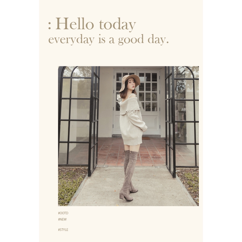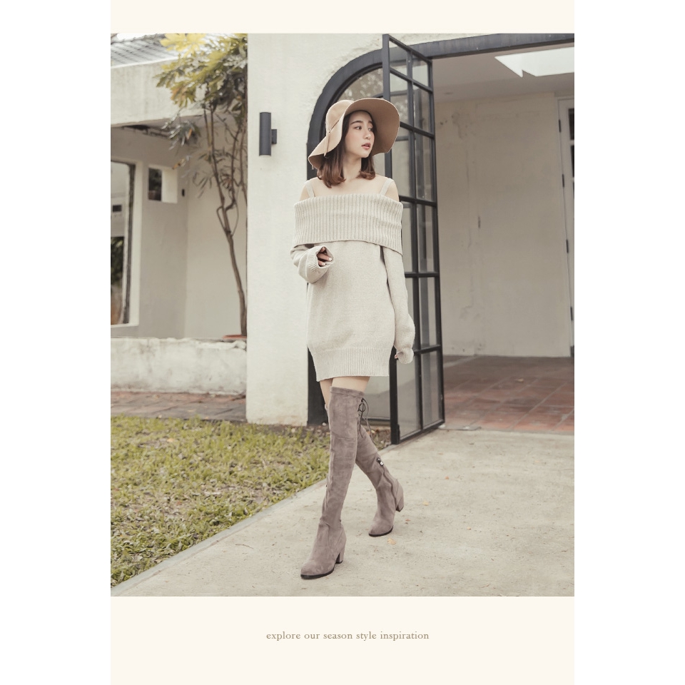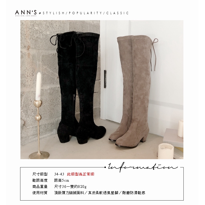 Ann’S 正常版-名模後蝴蝶結側拉鍊貼腿防水絨布過膝靴-可可