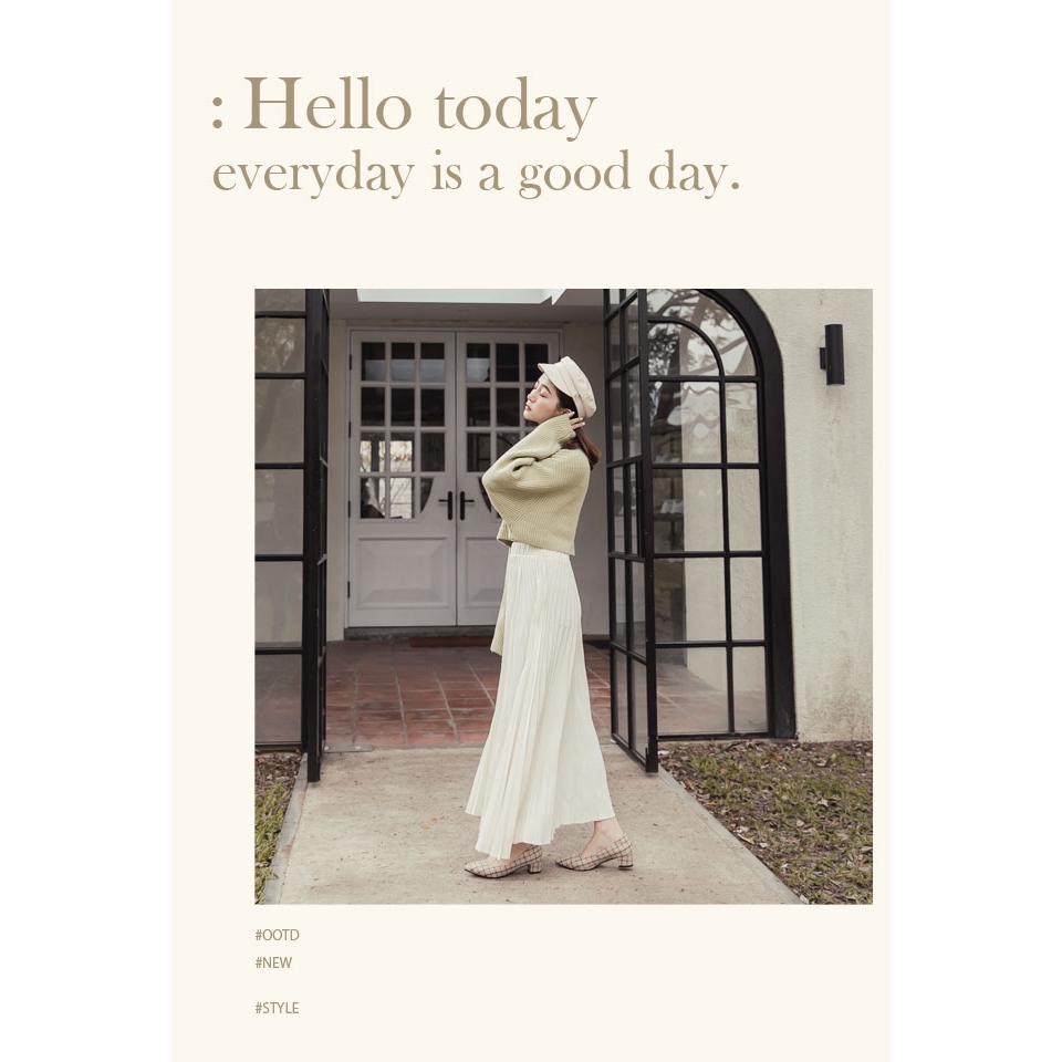 Ann’S加上優雅低跟版-毛呢格紋沙發後跟低跟尖頭鞋-米杏