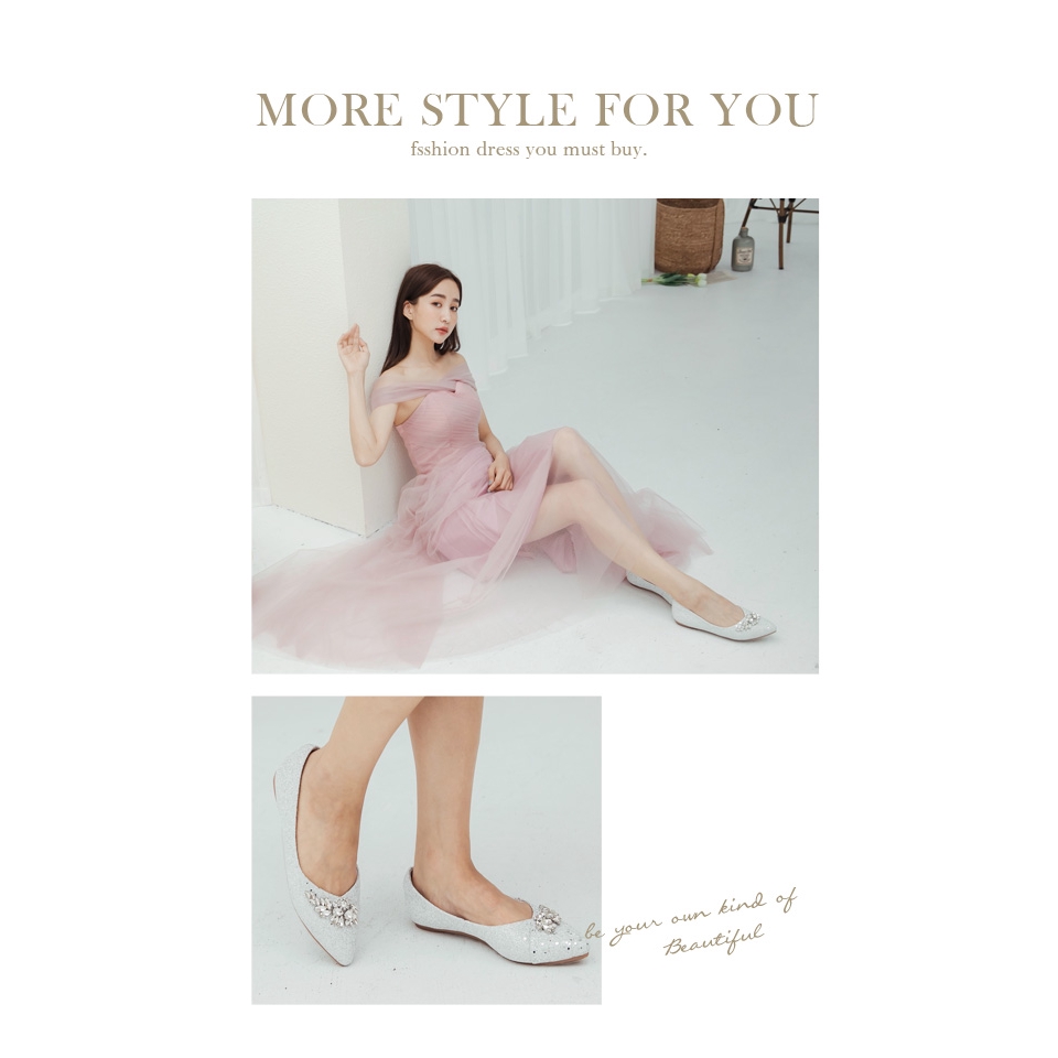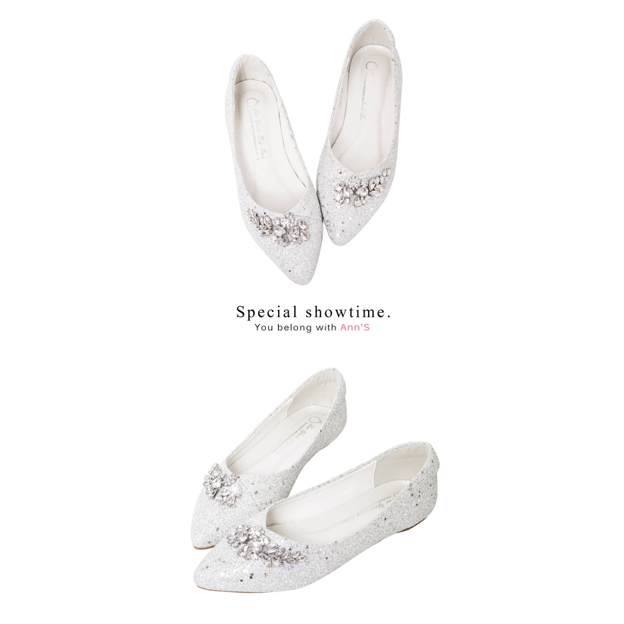 Ann’S高級羽毛鑽石扣V型顯瘦平底尖頭婚鞋