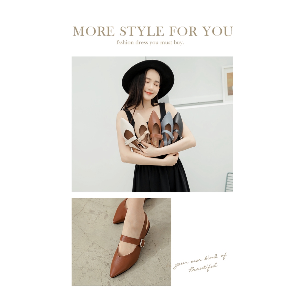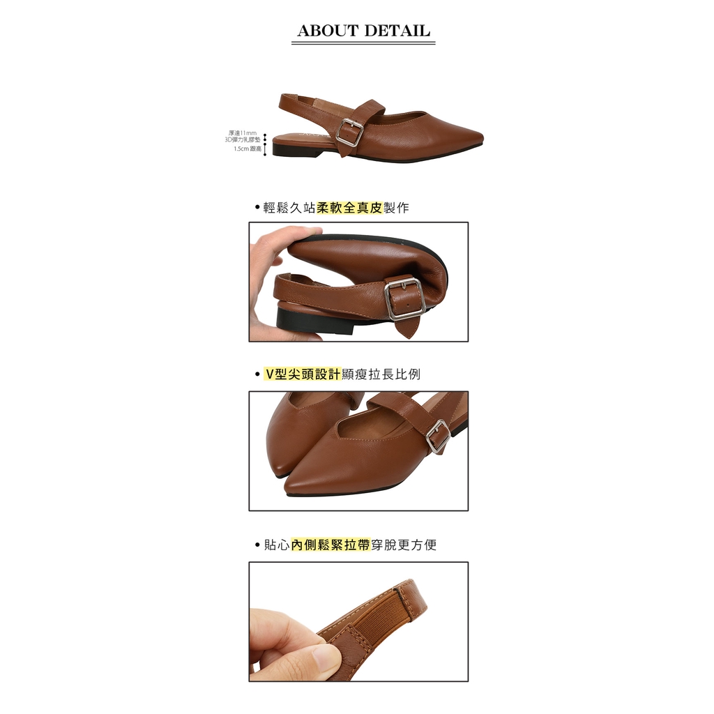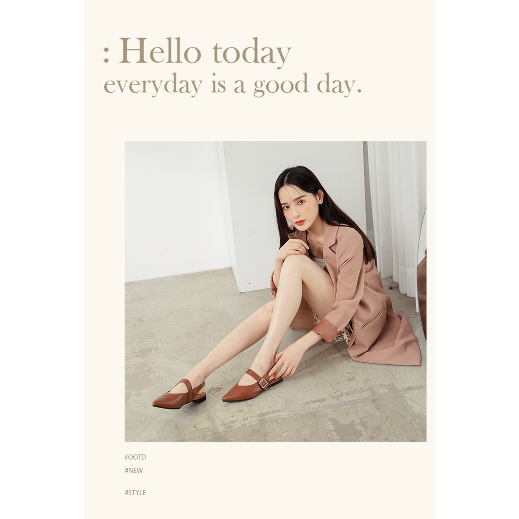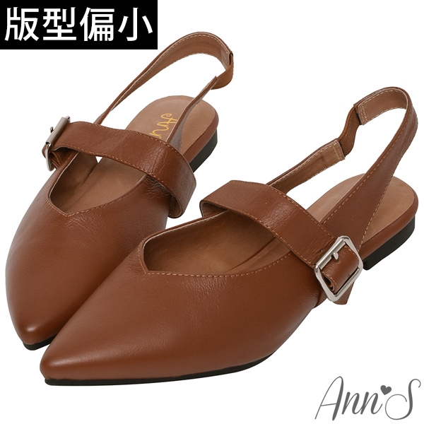 Ann’S寬肉腳板OK拉帶可調尖頭柔軟真皮平底鞋-咖