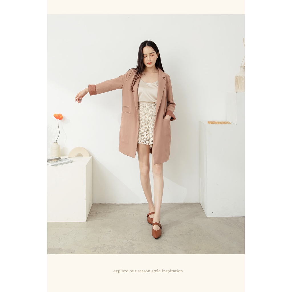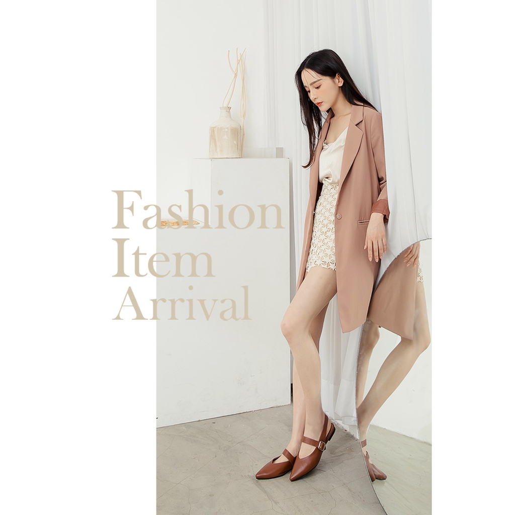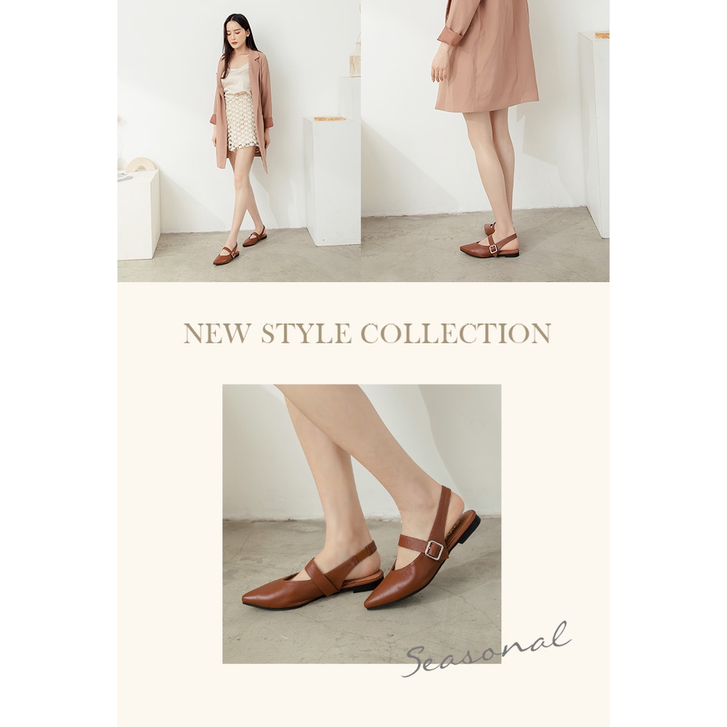 Ann’S寬肉腳板OK拉帶可調尖頭柔軟真皮平底鞋-咖