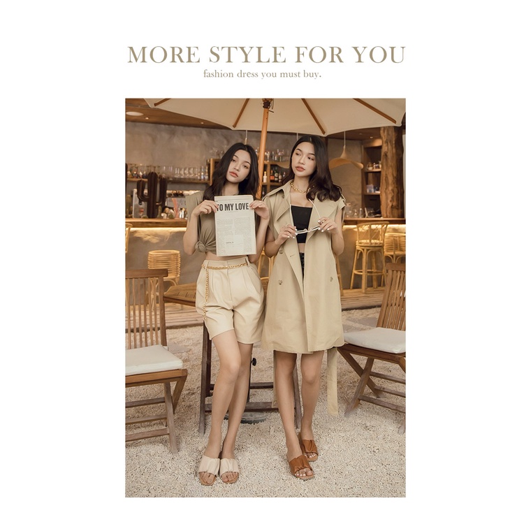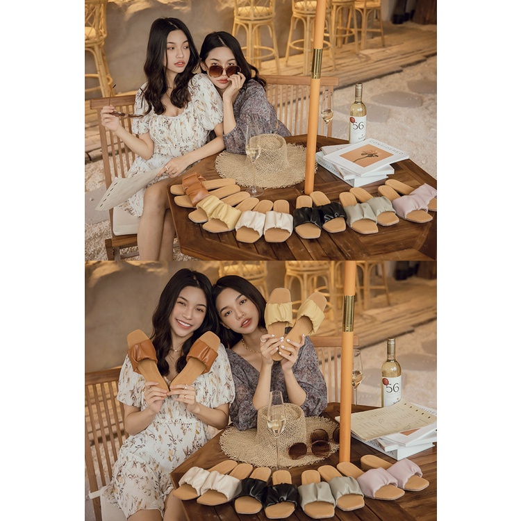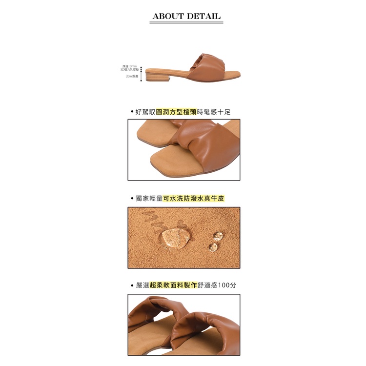 Ann’S水洗牛皮-軟澎澎抓皺木紋跟方頭涼拖鞋-棕