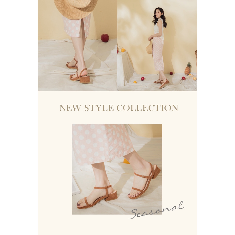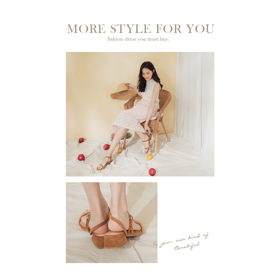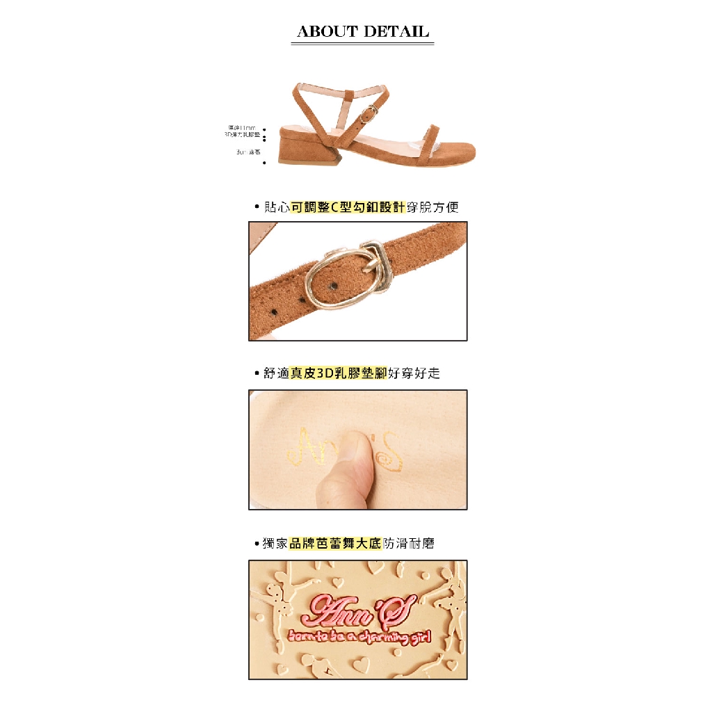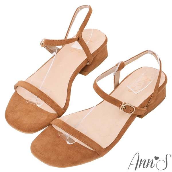 Ann’S輕盈氣質-弧線細帶純色絨質一字方頭涼低跟鞋-棕