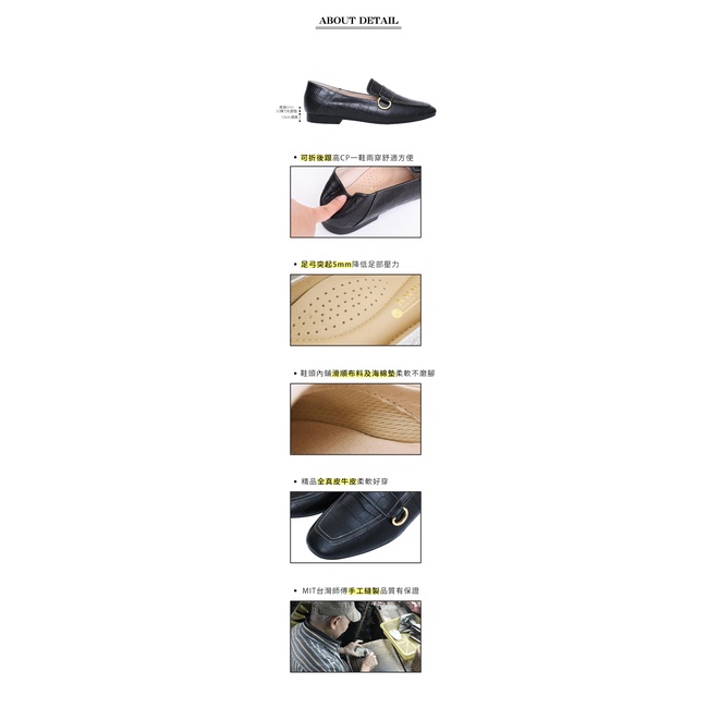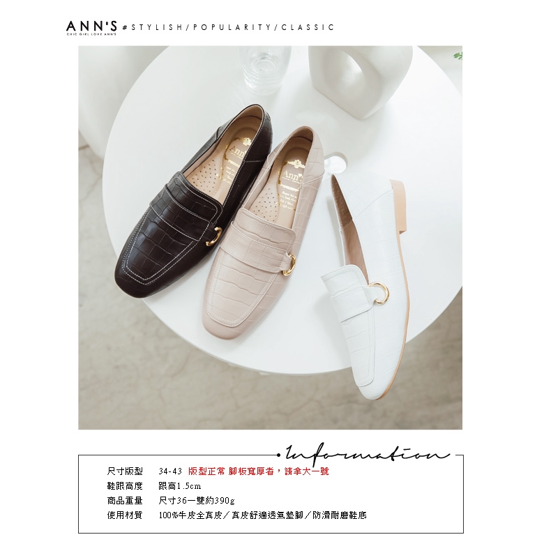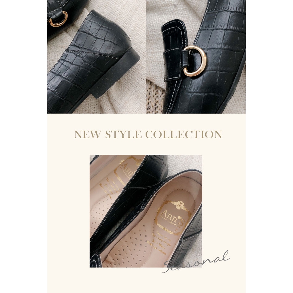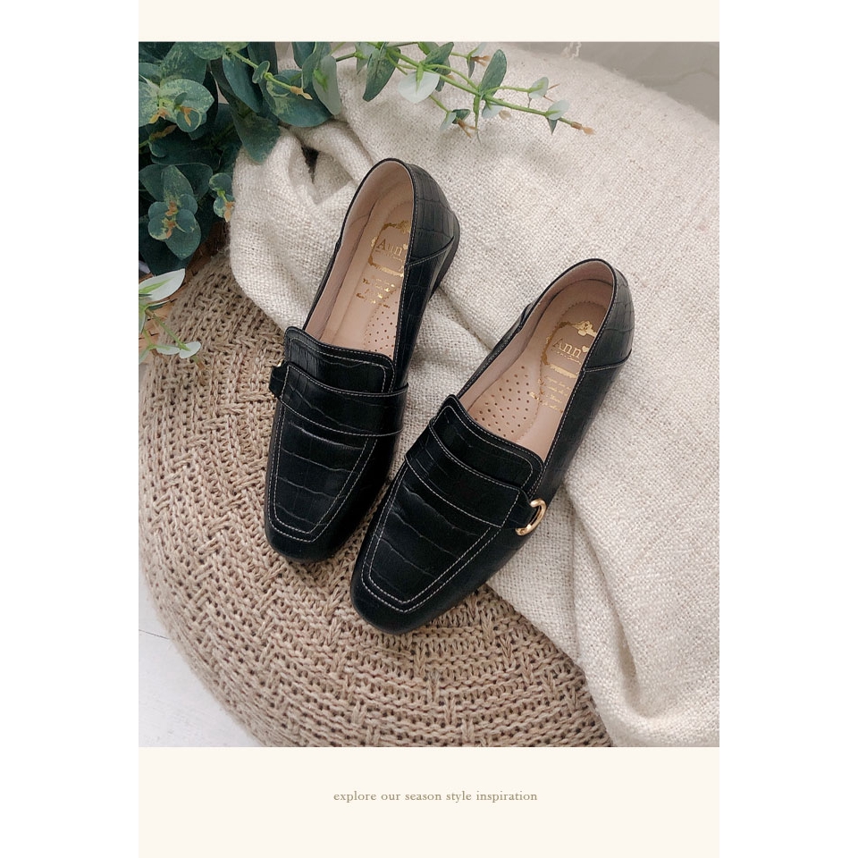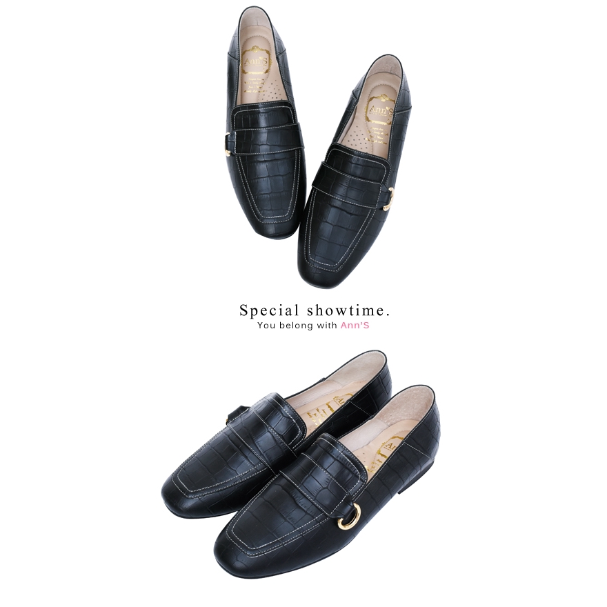 Ann’S金色D扣石頭紋牛皮真皮兩穿穆勒平底樂福鞋-黑