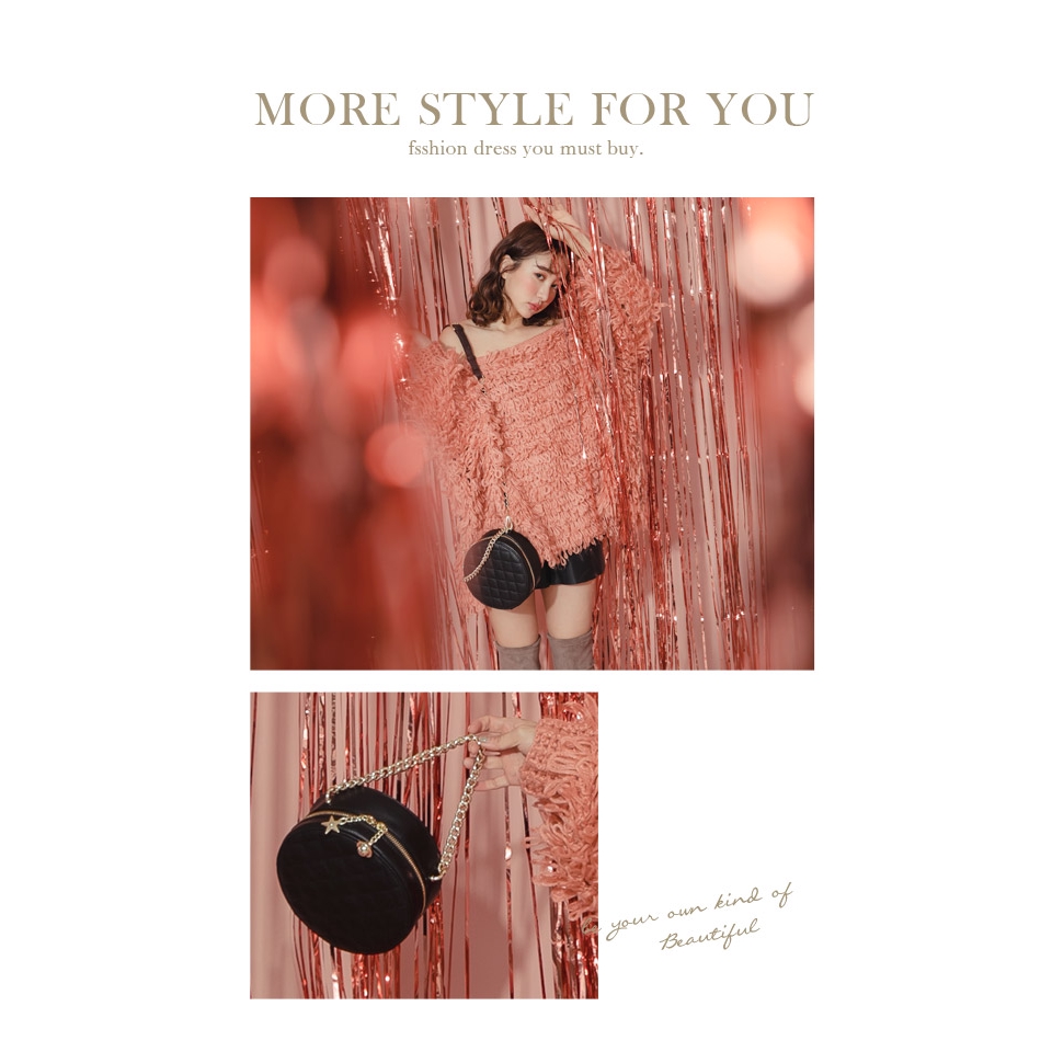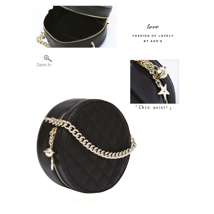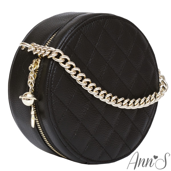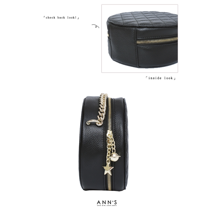 Ann’S小香風-頂級牛皮星球綴飾菱格立體小圓包-黑