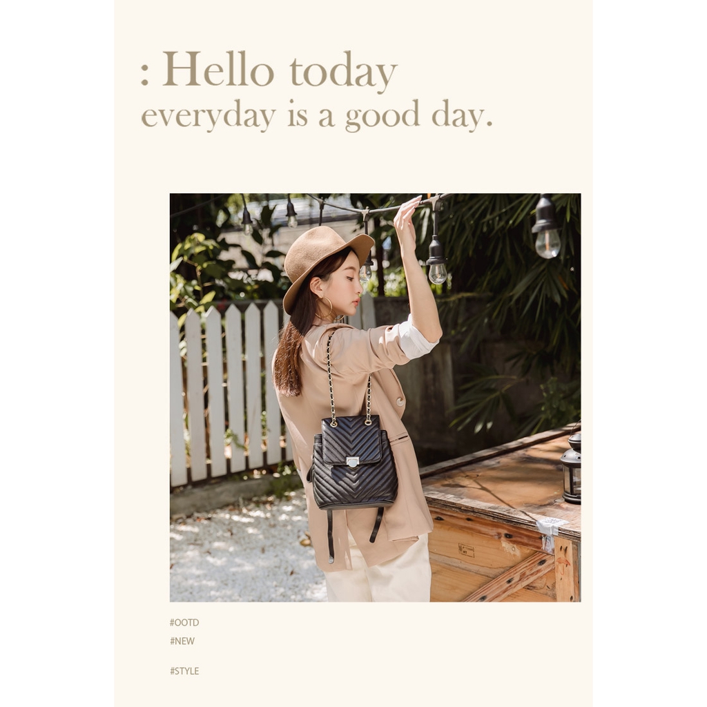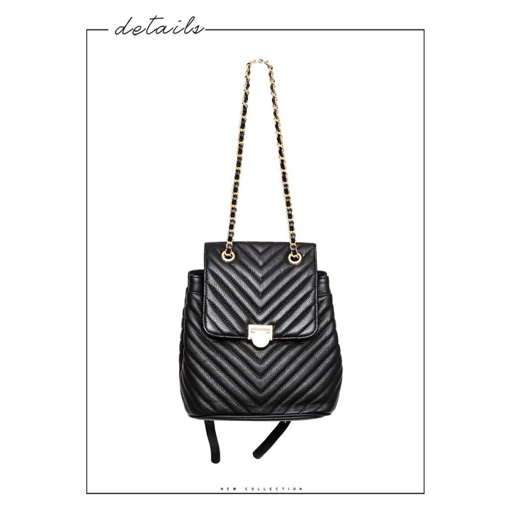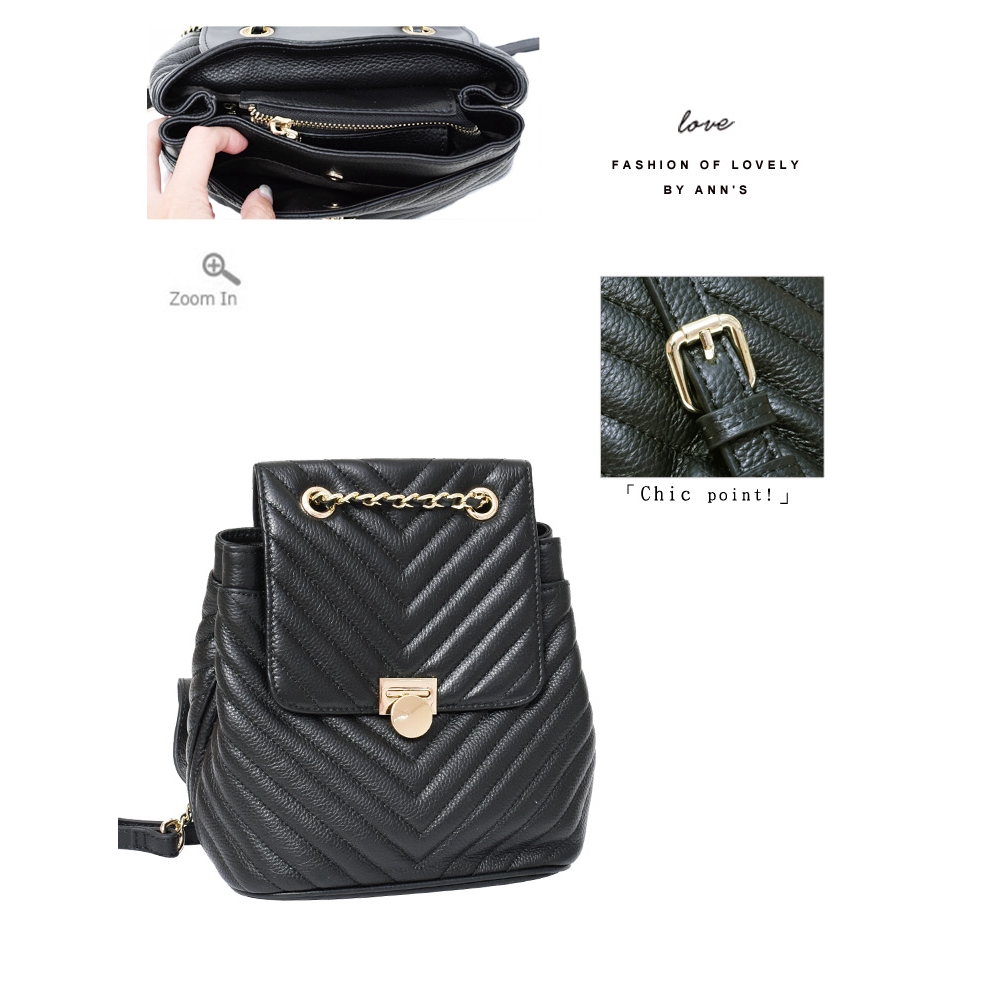 Ann’S全真皮圓形金釦山形紋2WAY鏈帶後背包-黑