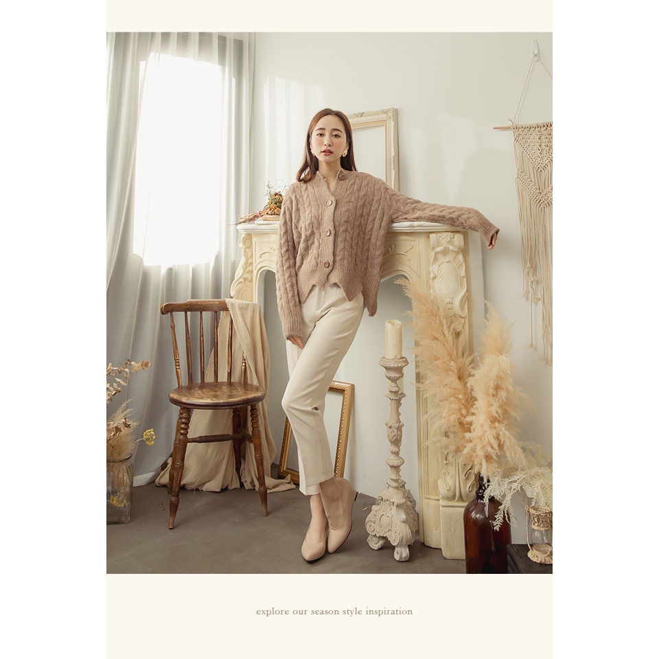 Ann’S通勤魅力-精品小羊皮楔型坡跟尖頭包鞋-杏
