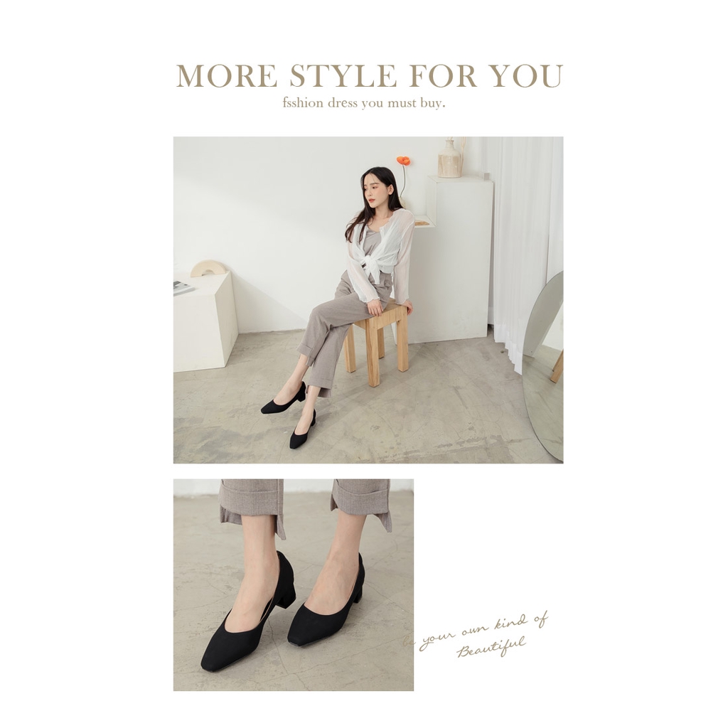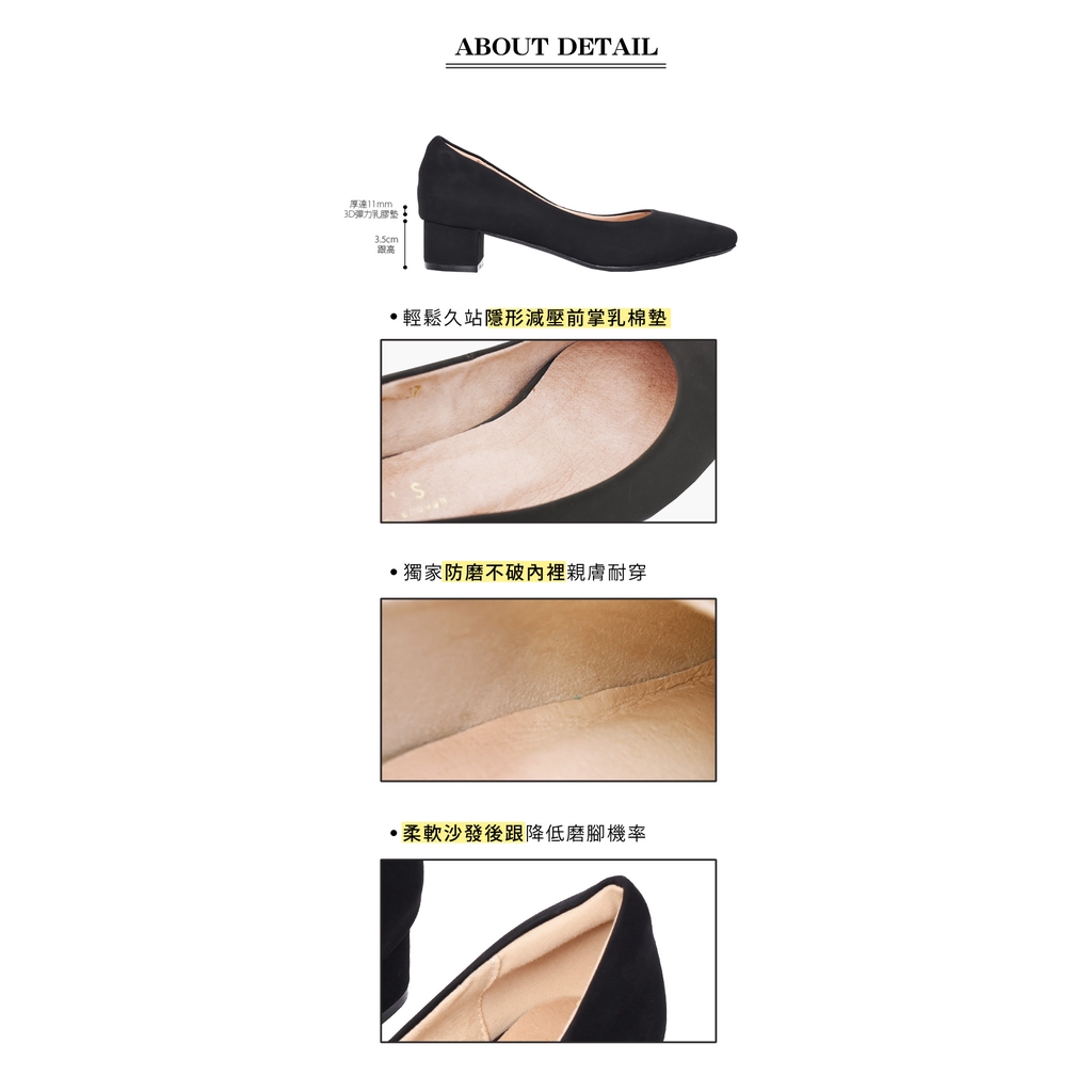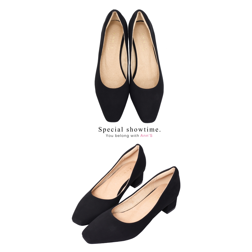 Ann’S真的很舒服-霧面皮革粗跟小方頭鞋3.5cm-黑