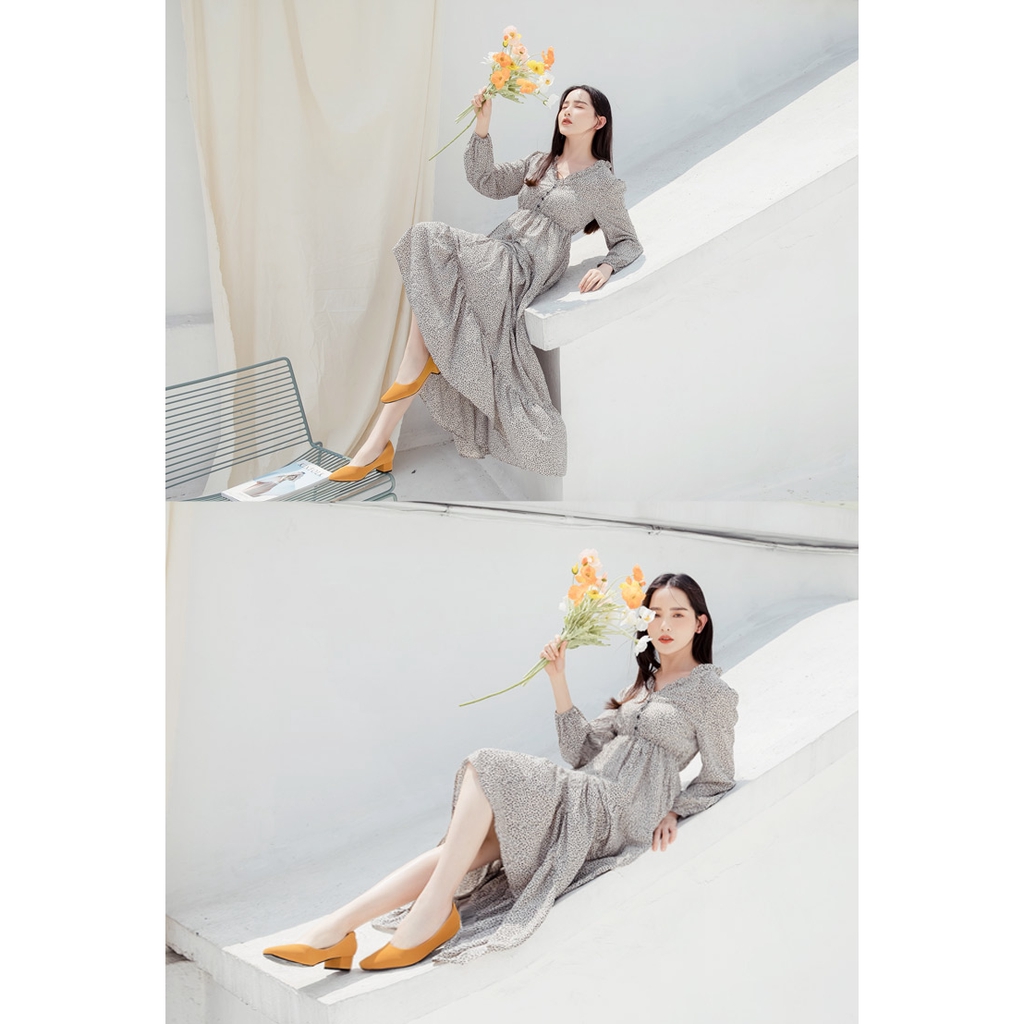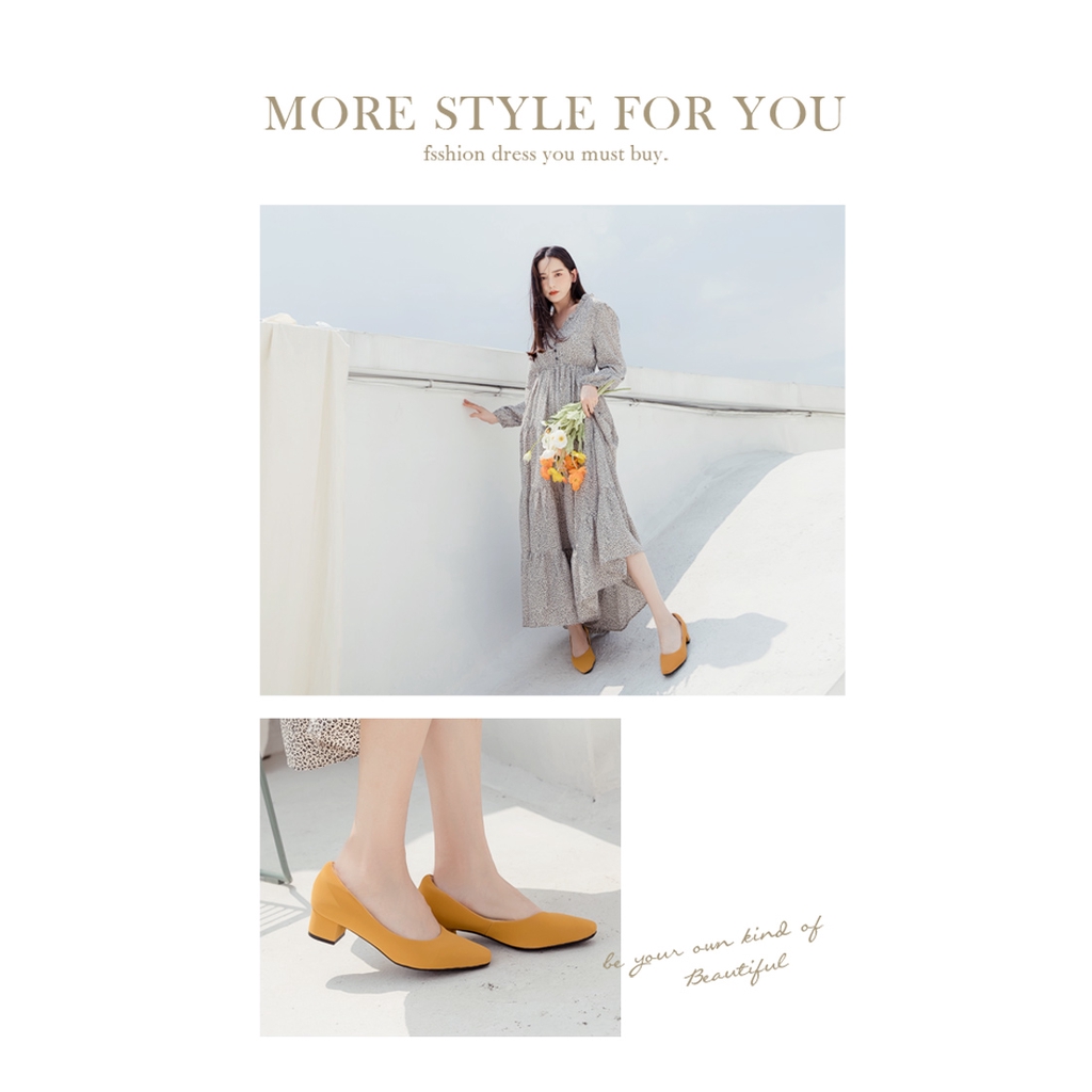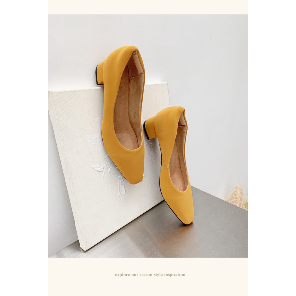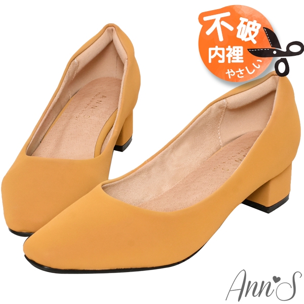 Ann’S真的很舒服-霧面皮革粗跟小方頭鞋3.5cm-黃