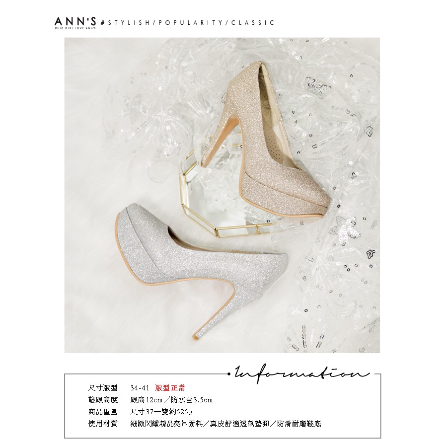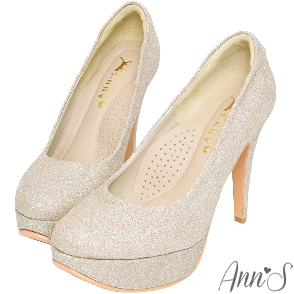 Ann’S MIT系列不勾紗閃亮面料防水台厚底高跟鞋12cm-金