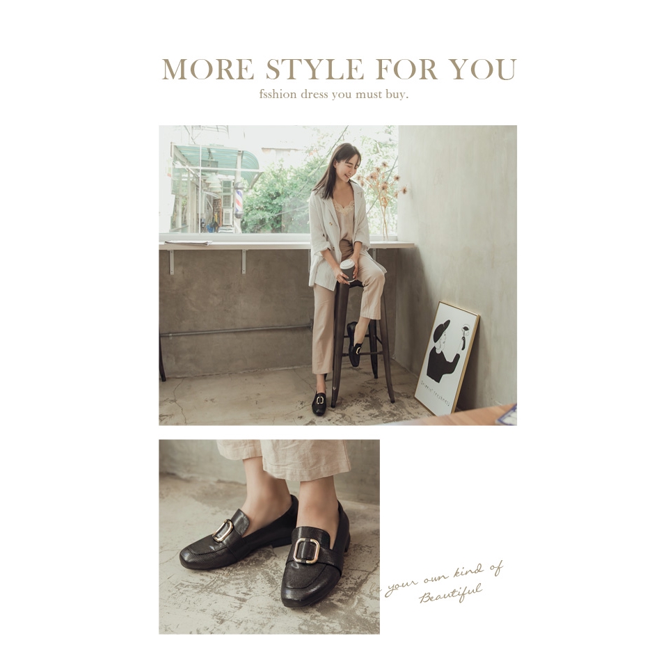 Ann’S霓光協奏曲-細緻蛇紋金色方環樂福鞋-黑