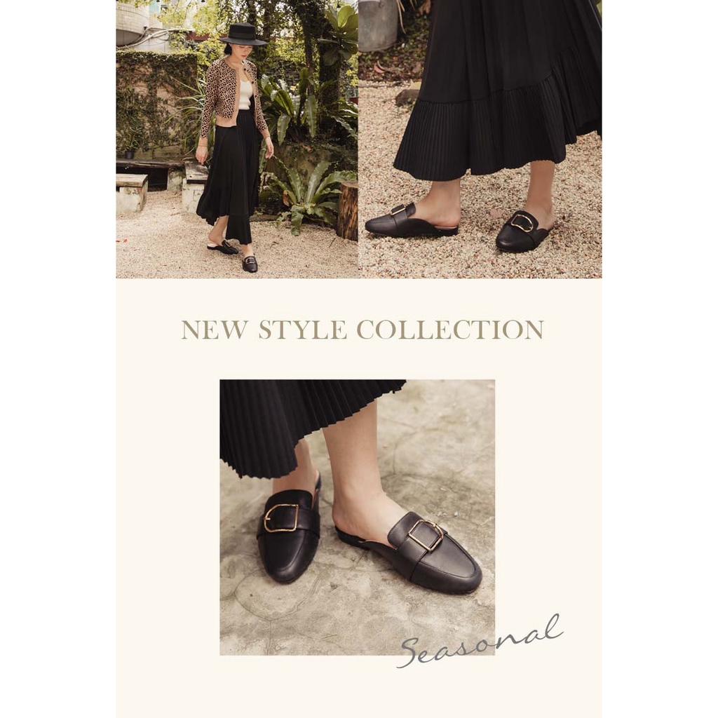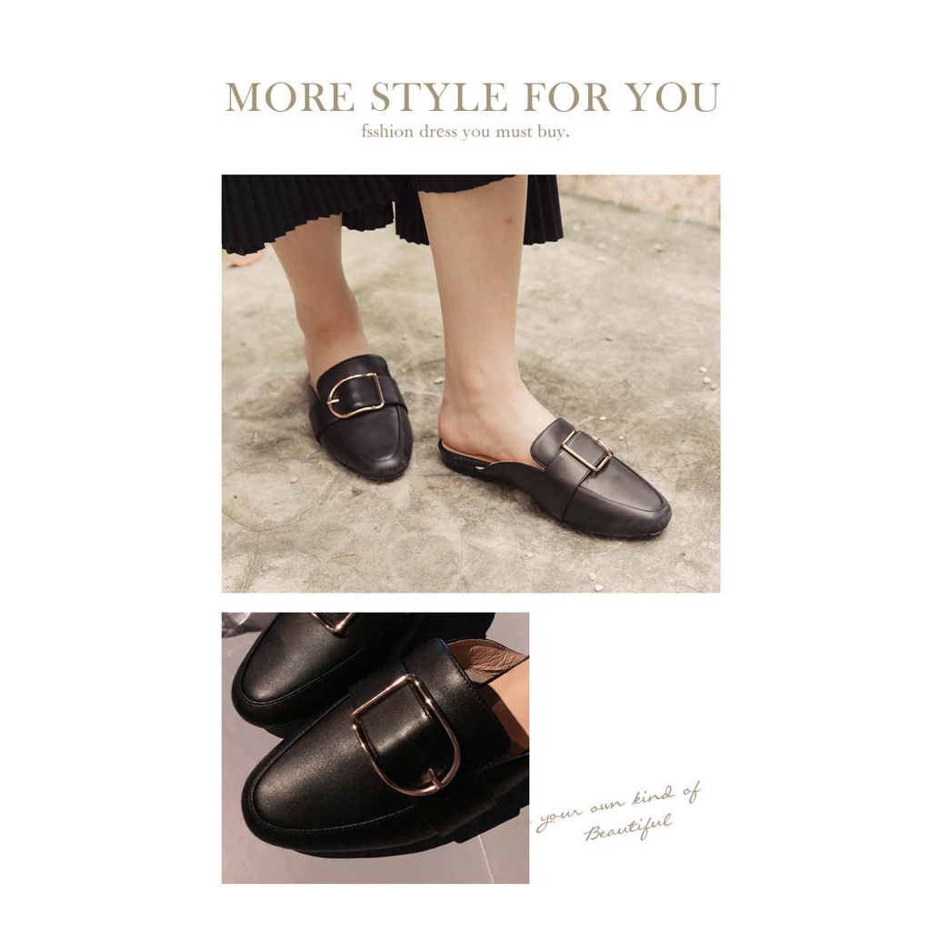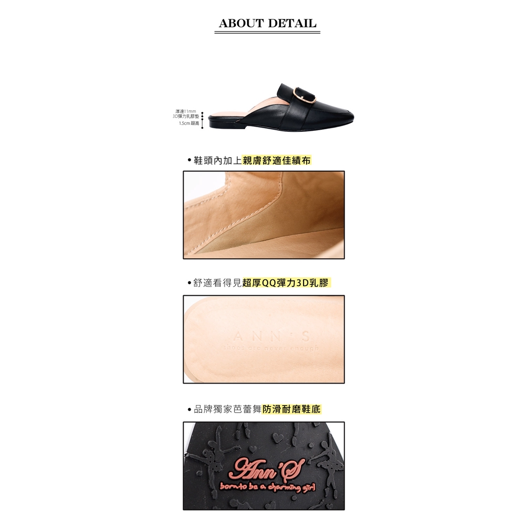 Ann’S質感真小羊皮D型扣帶穆勒鞋-黑(版型偏小)