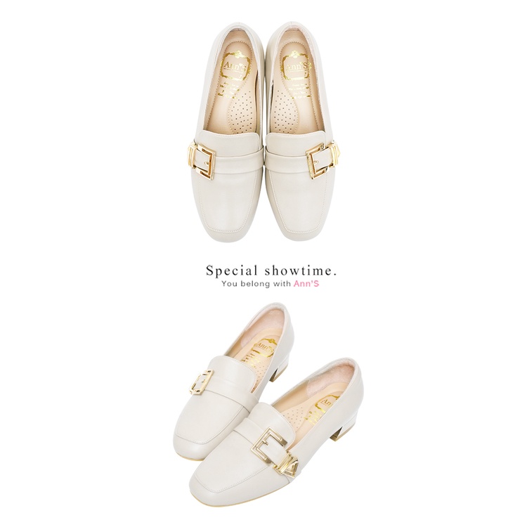 Ann’S鏤空造型金扣頂級綿羊皮平底樂福鞋3cm-杏