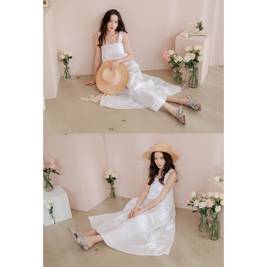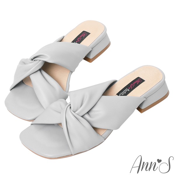 Ann’S棉質感受-柔軟扭結方頭涼拖鞋3cm-藍(版型偏小)