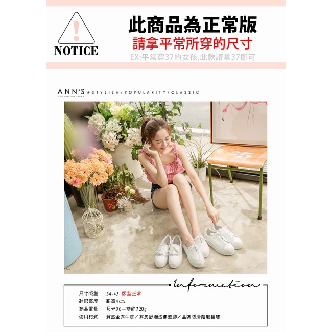 Ann’S激瘦第三代全真牛皮流蘇厚底小白鞋