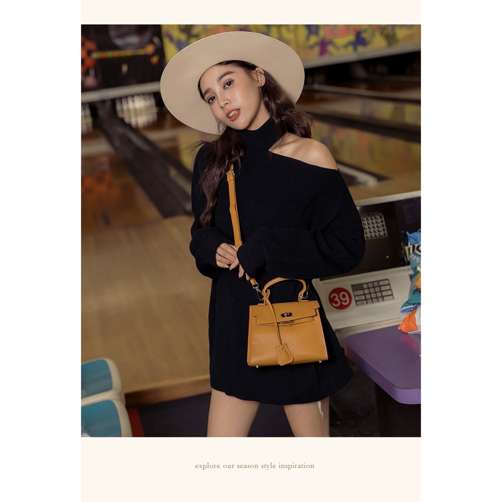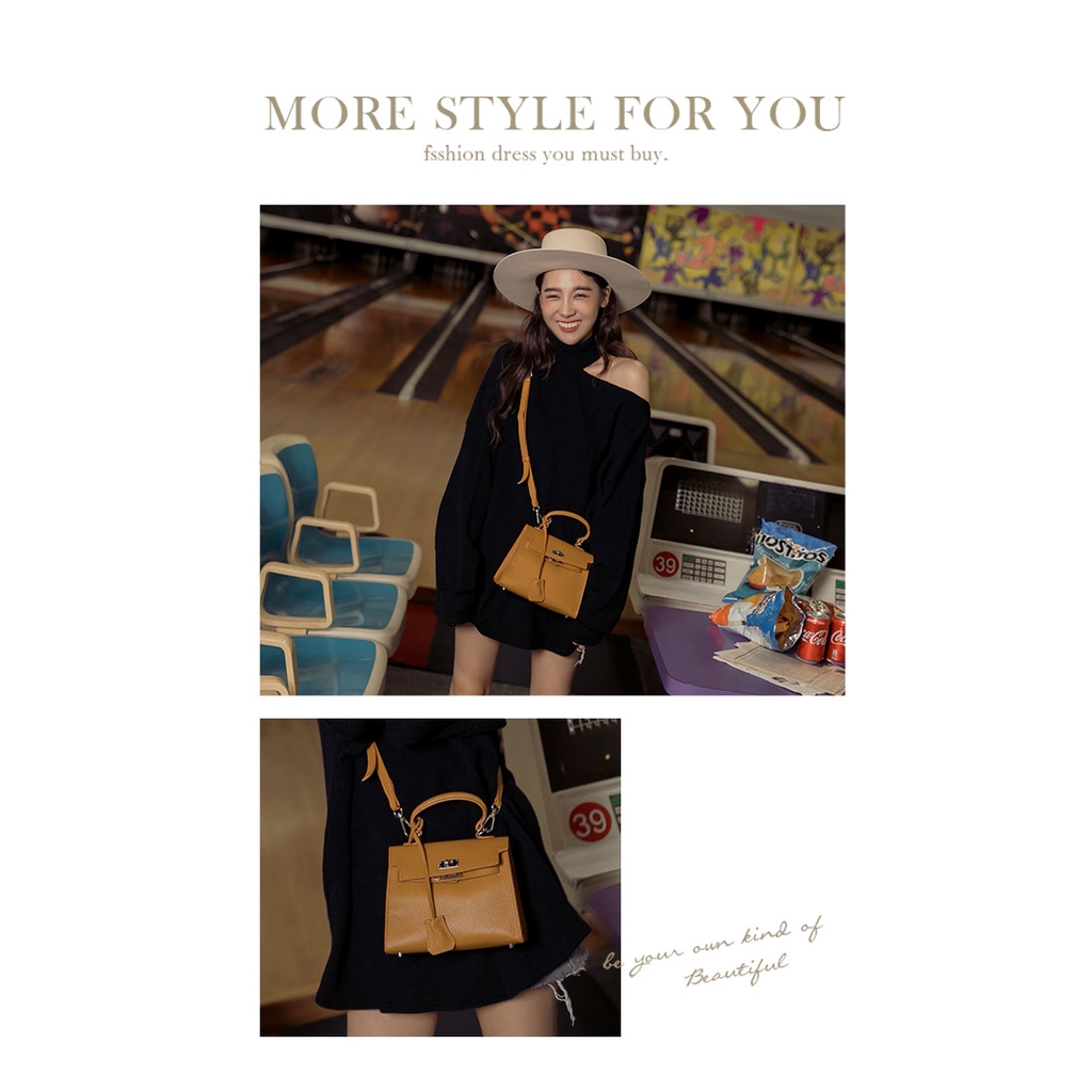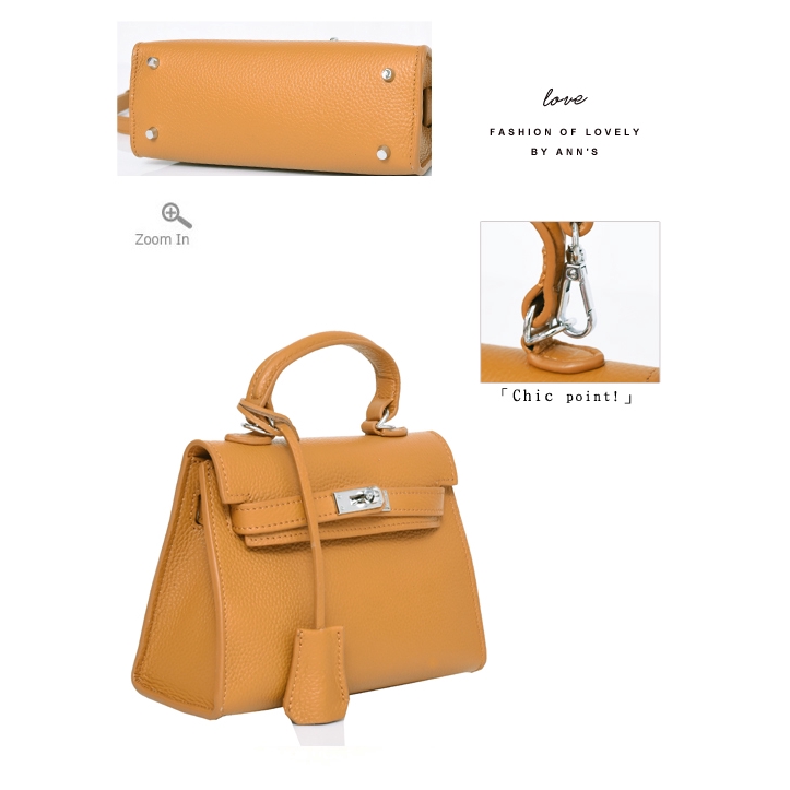 Ann’S經典時裝配件-迷你凱莉包質感全真皮-黃