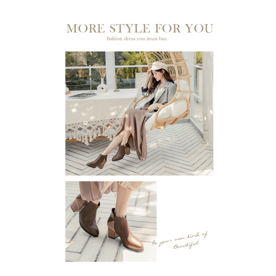 Ann’S丹麥時尚-幾何拼接絨布粗跟短靴-咖啡