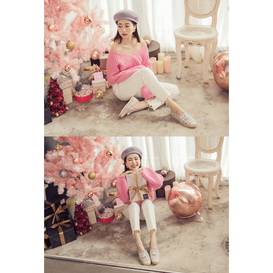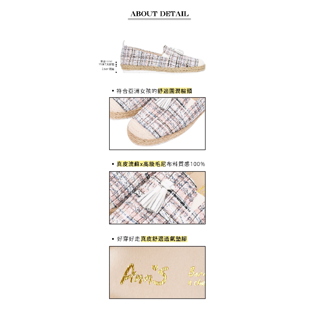 Ann’S日本進口毛呢真皮流蘇平底懶人鞋-粉