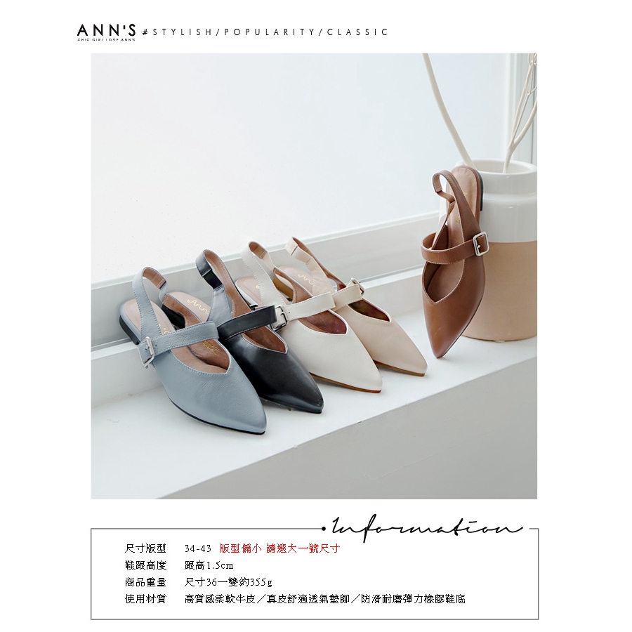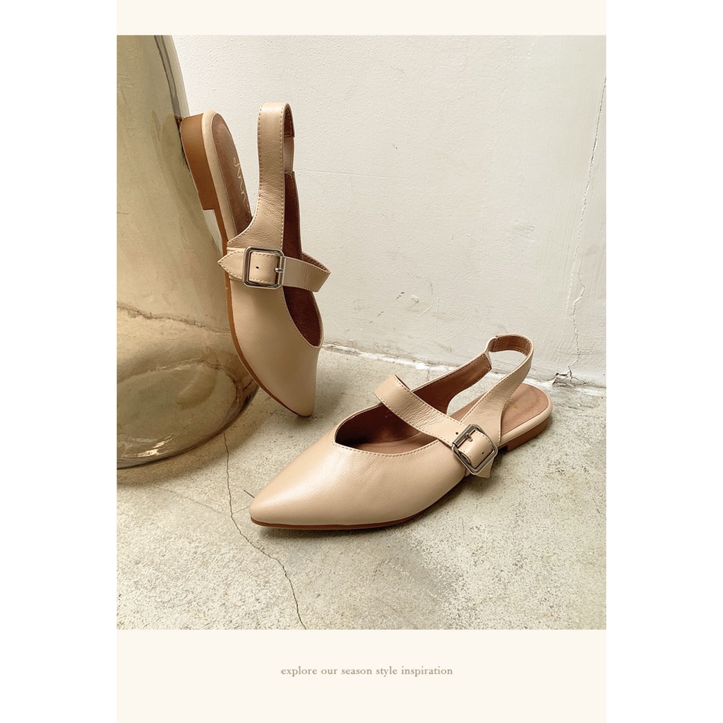 Ann’S寬肉腳板OK拉帶可調尖頭柔軟真皮平底鞋-杏