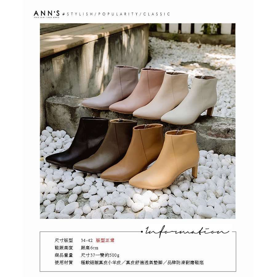 Ann’S這是主打款-小羊皮扁跟6公分尖頭短靴-米白