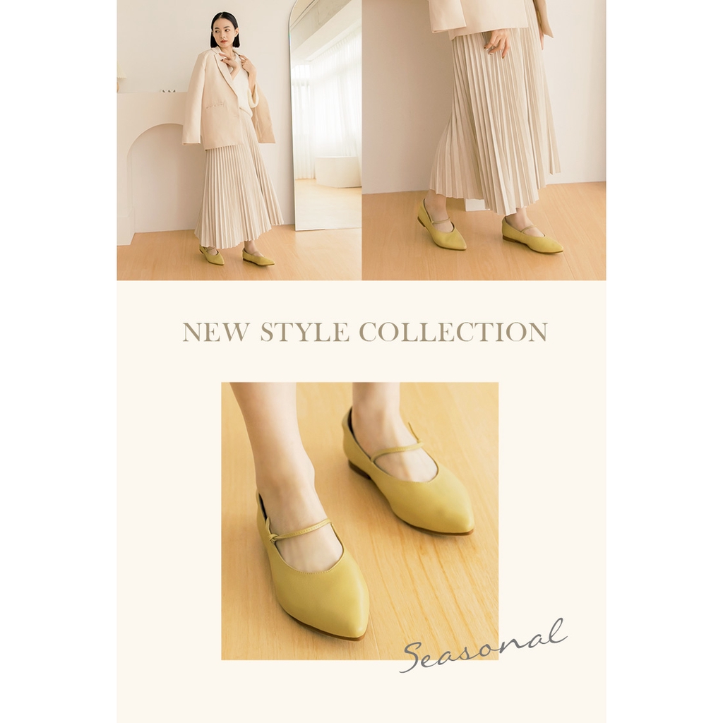 Ann’S氣質文青女孩-細皮繩V口尖頭超軟真皮平底鞋-黃(版型偏小)