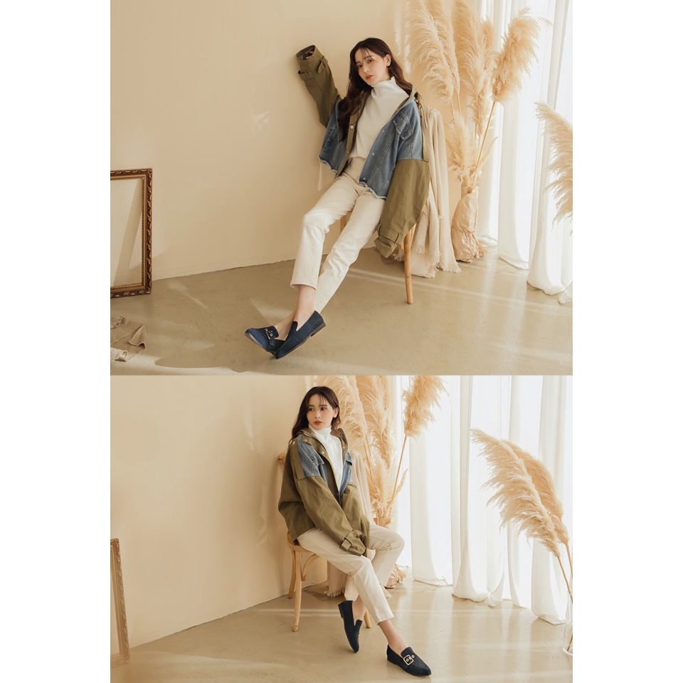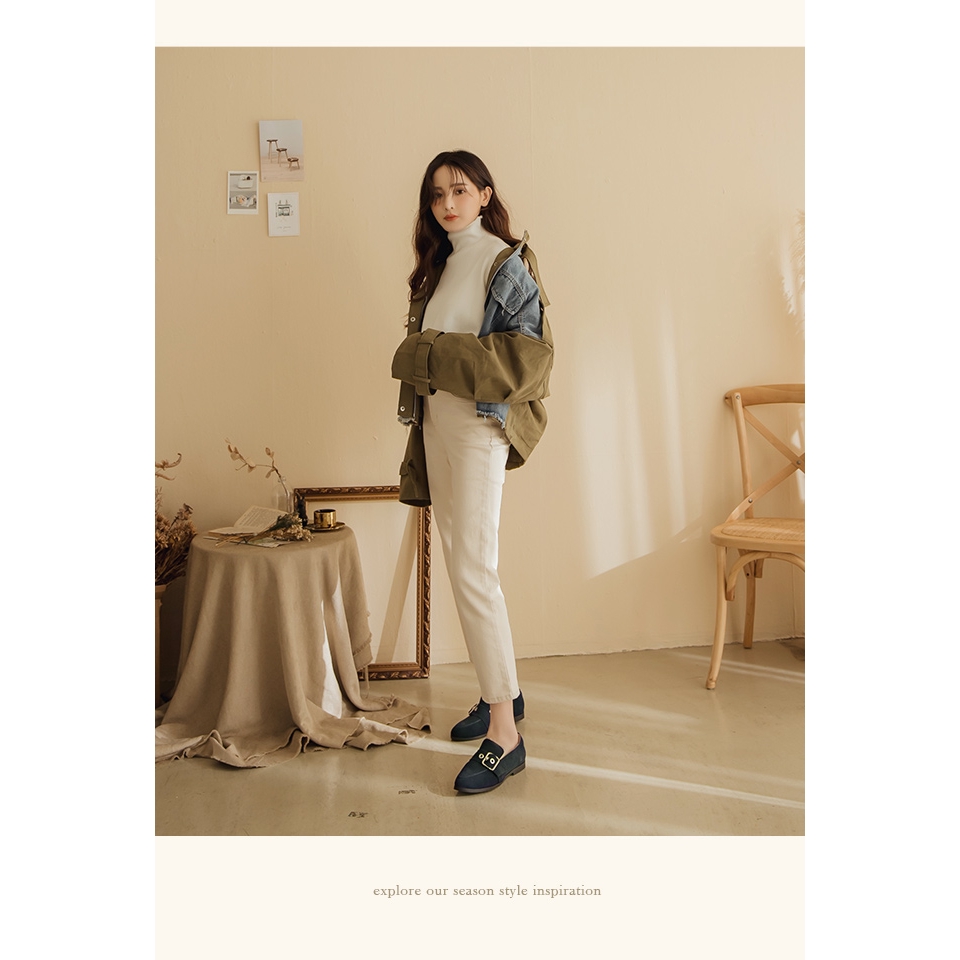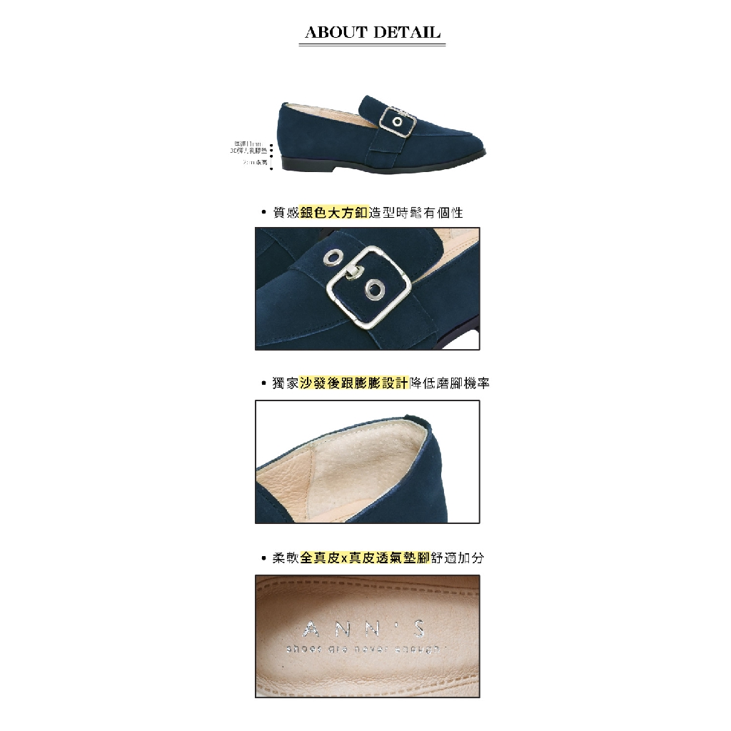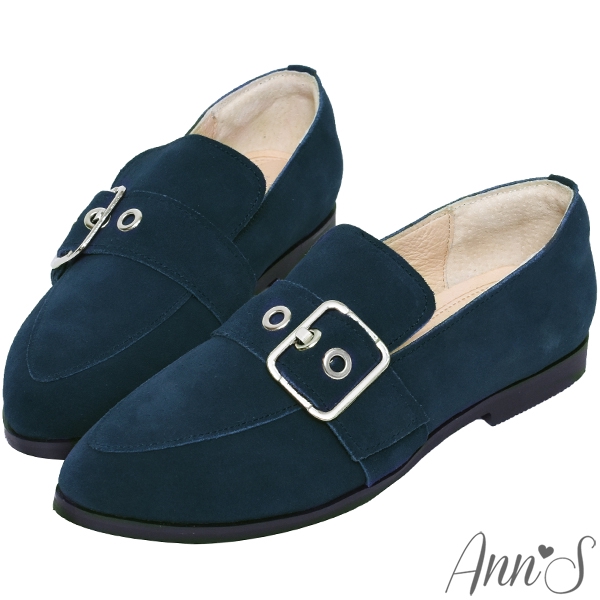 Ann’S有一點個性-防潑水牛麂皮銀色扣帶平底樂福鞋-深藍