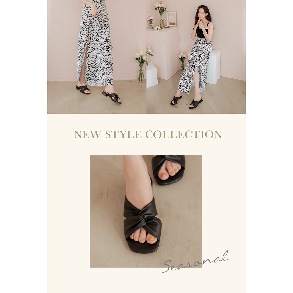 Ann’S棉質感受-柔軟扭結方頭涼拖鞋3cm-黑(版型偏小)