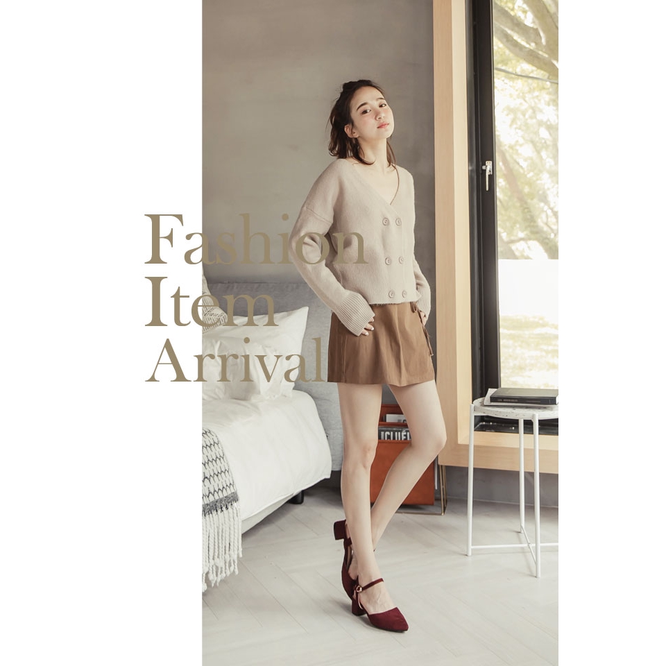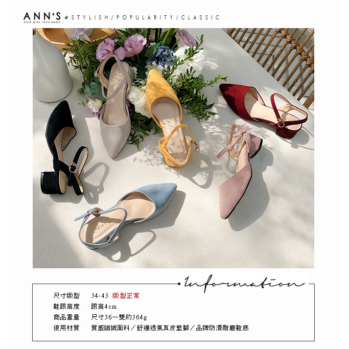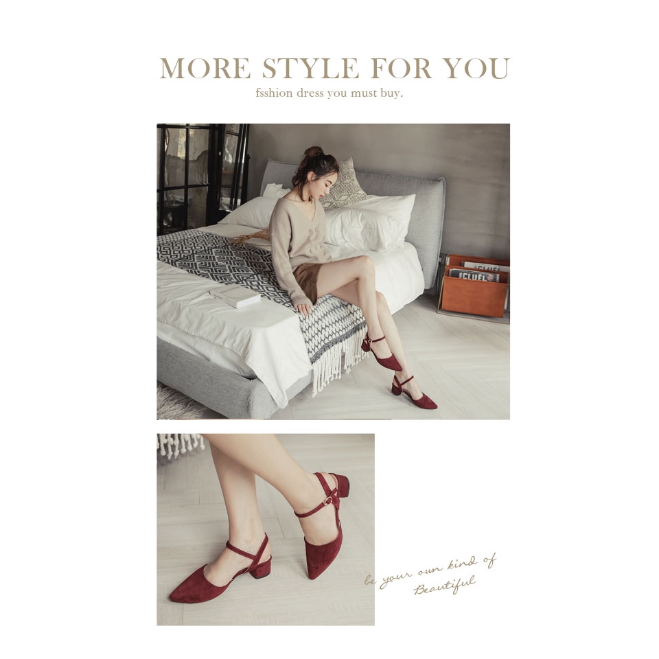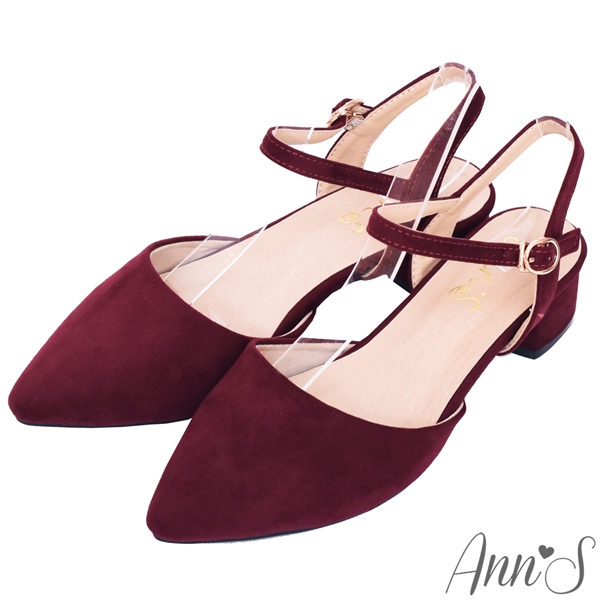 Ann’S砰然約會-夢幻細絨繫帶側V顯瘦粗跟尖頭鞋-紅
